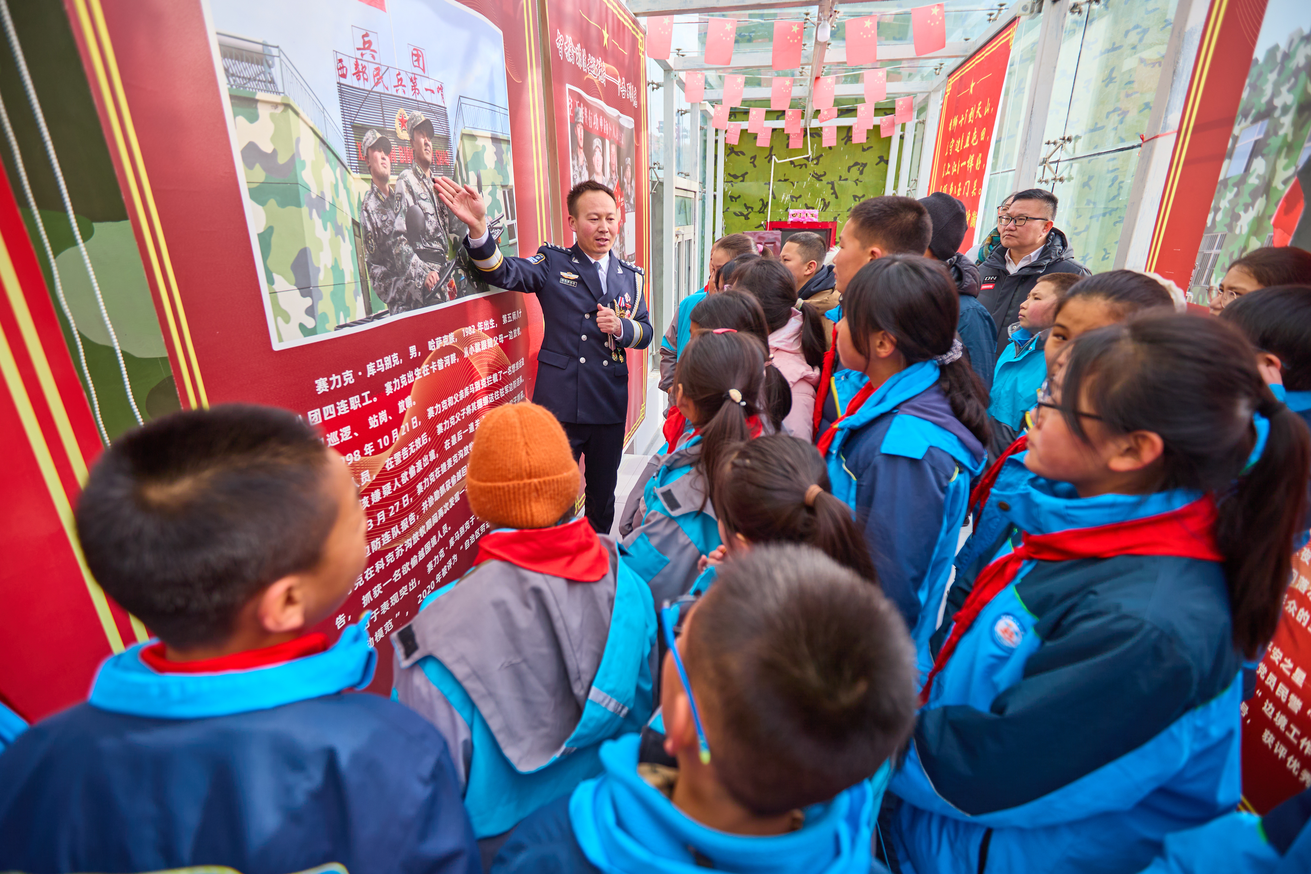 阿思里別克向?qū)W生講述警務(wù)站踐行雷鋒精神的典型人物事跡。蘆勝磊攝