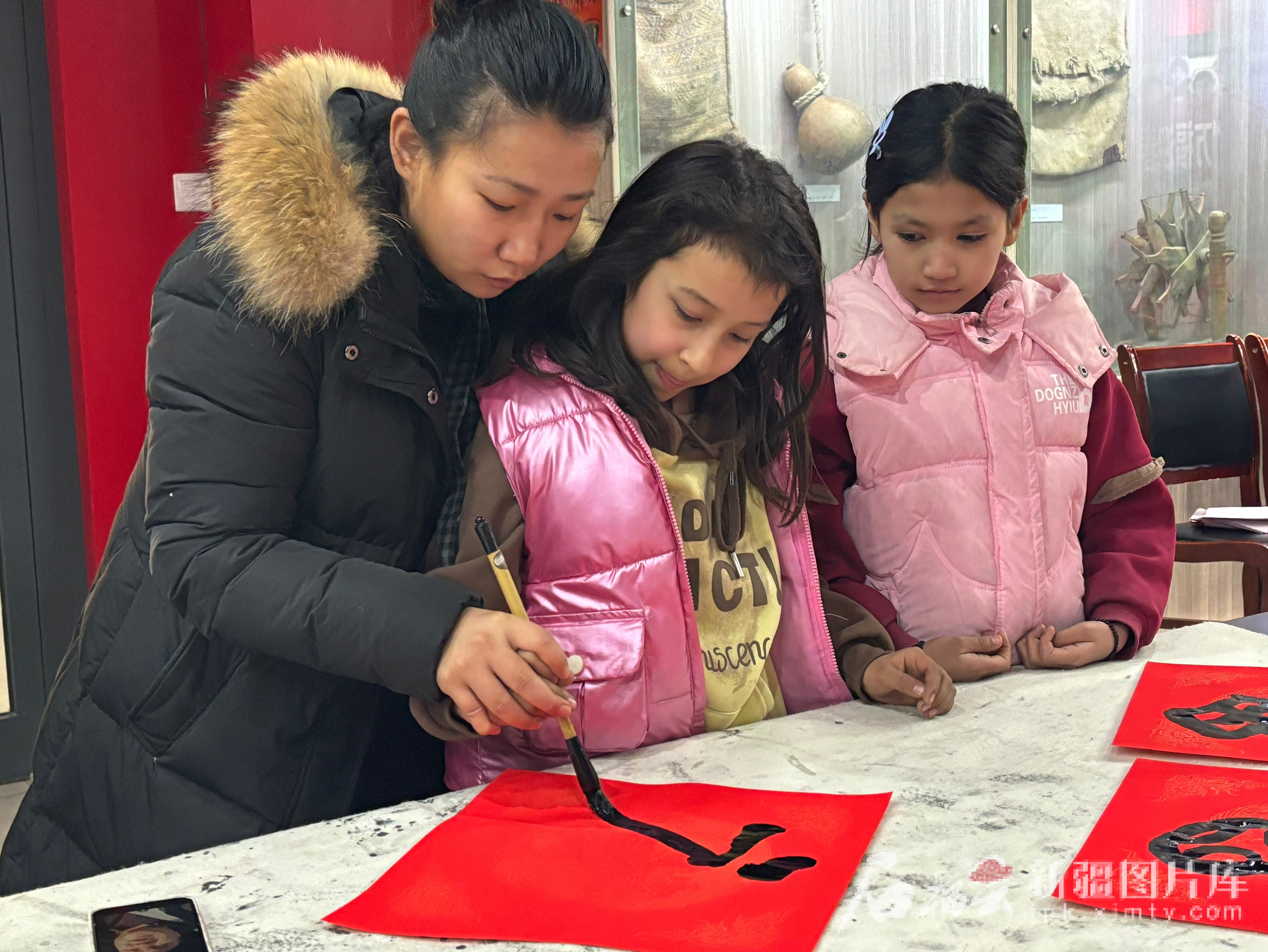 劉錚與社區(qū)居民家的孩子共同寫(xiě)“?!弊帧#ㄙY料圖)圖片由受訪(fǎng)者本人提供