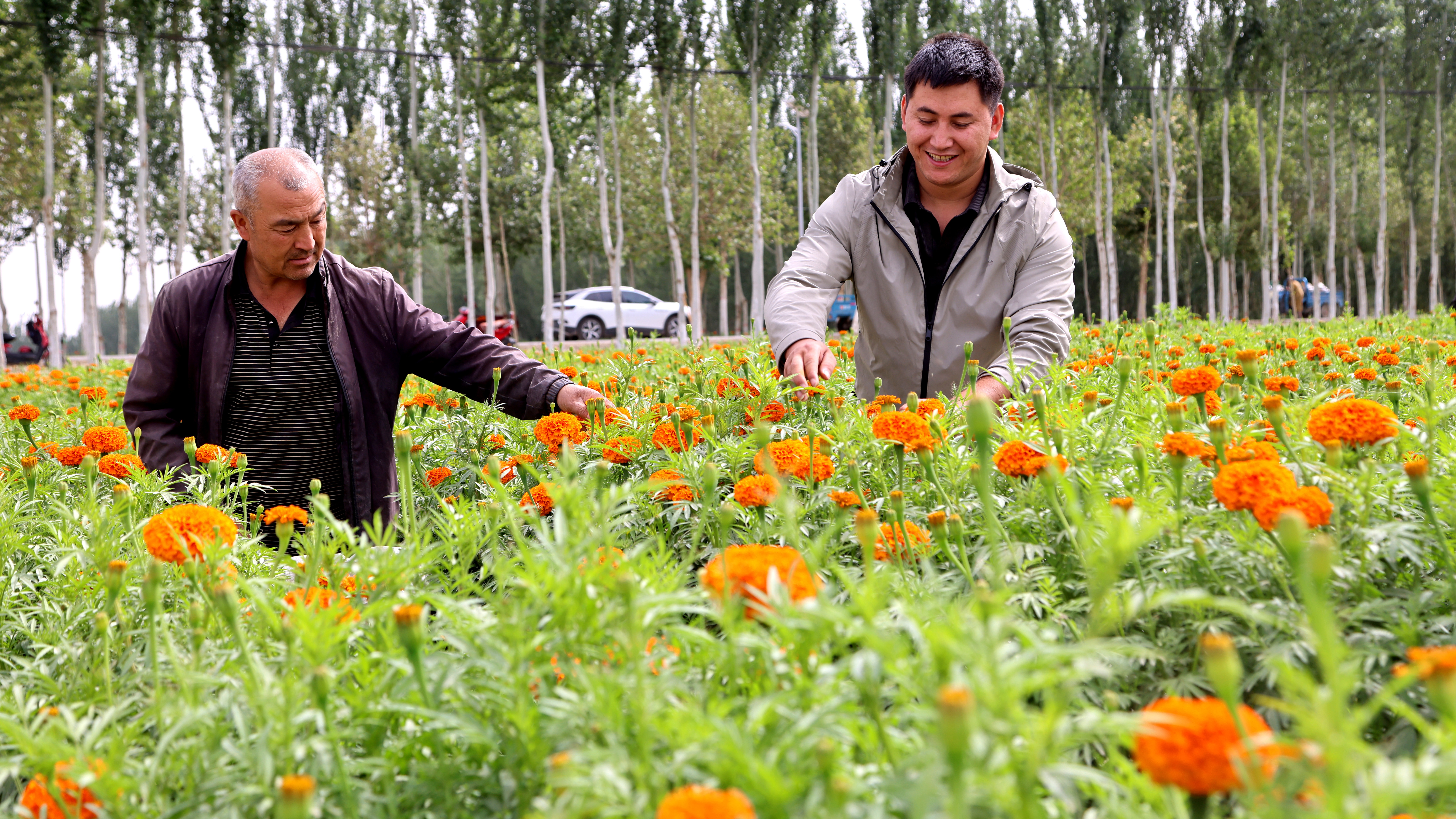闊什吾斯塘村村民圖如普·麥麥提圖爾蓀說(shuō):“今年我家種了10畝萬(wàn)壽菊,收購(gòu)價(jià)是每公斤1.2元,照這行情,收入比去年翻一番?!?/p>