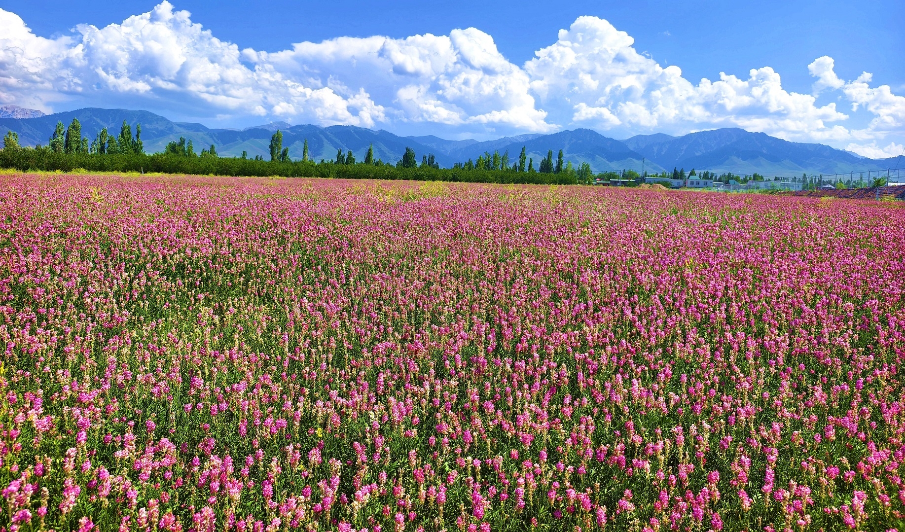 克其克博拉村紅豆草種植基地里,一望無際的紅豆草枝繁葉茂,花蕾搖曳,長(zhǎng)勢(shì)喜人。華巖明攝