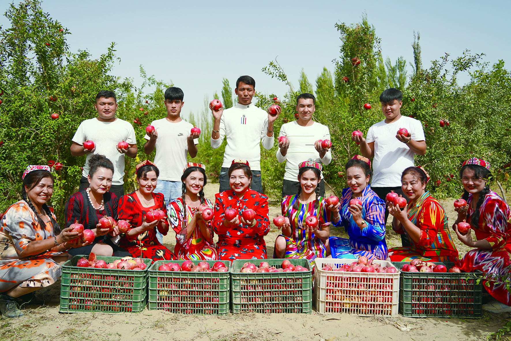 在工作隊(duì)、援疆力量與村“兩委”的共同努力下,石榴籽村抓好以石榴為主的林果業(yè),成功打造了集生產(chǎn)、加工、銷售、體驗(yàn)為一體的石榴生產(chǎn)基地,形成了完整的產(chǎn)業(yè)鏈條,為村民持續(xù)增收提供了保障。