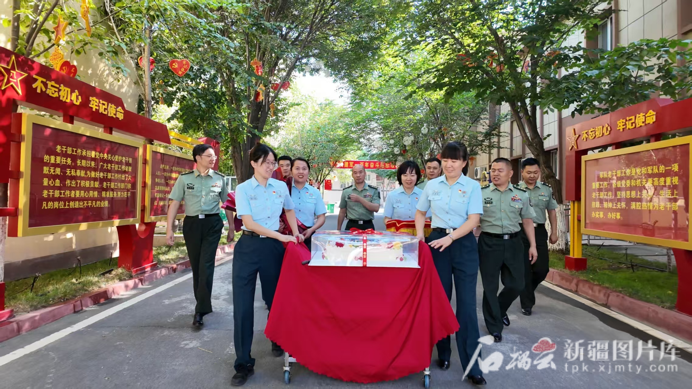 7月1日,烏魯木齊某干休所工作人員帶著定制蛋糕前往牛志舜家中,為老人慶生。通訊員 孫翊國攝