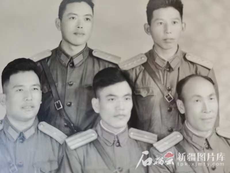 牛志舜(前中)1957年晉升少校軍銜時與戰(zhàn)友合影。烏魯木齊某干休所供圖