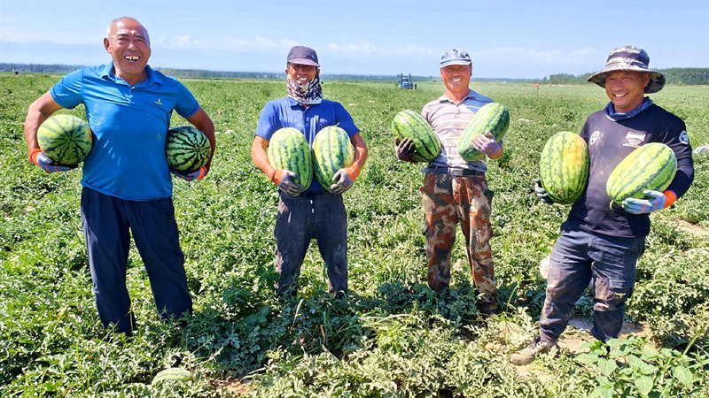 察布查爾錫伯自治縣堆齊牛錄鄉(xiāng)堆齊牛錄村千畝西瓜迎來采摘季,田野呈現(xiàn)出一派產(chǎn)銷兩旺的景象。(來源:察布查爾錫伯自治縣融媒體中心)