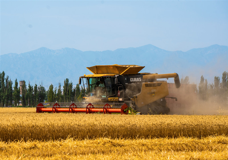 近日,伊寧縣12.1萬畝冬小麥迎來了收割季,聯(lián)合收割機(jī)在麥田中穿梭,一幅科技賦能、高效豐收的壯美畫卷在田野間盡情鋪展。 (來源:伊寧縣融媒體中心)