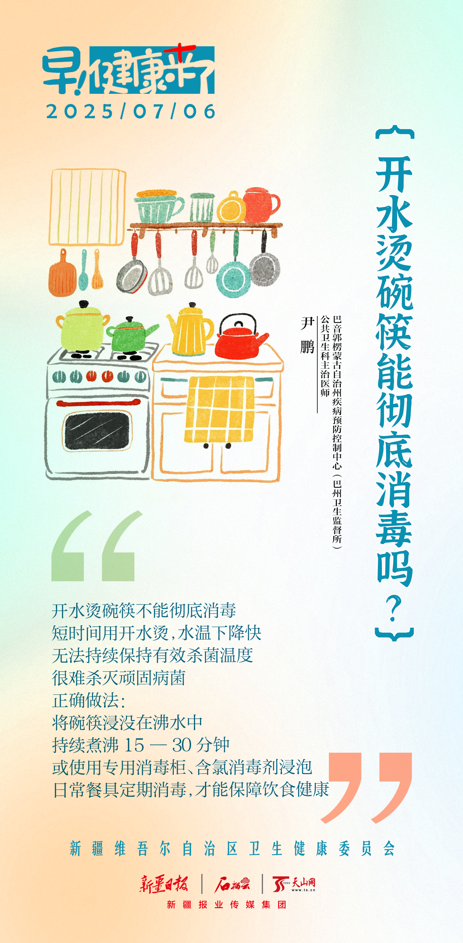 每次下館子第一件事:拆塑膜、倒開水、涮碗筷……這套“餐前儀式”你中了幾條?巴音郭楞蒙古自治州疾病預(yù)防控制中心(巴州衛(wèi)生監(jiān)督所)公共衛(wèi)生科主治醫(yī)師尹鵬提示,開水燙碗筷不能徹底消毒,具體怎么做,一圖告訴你。