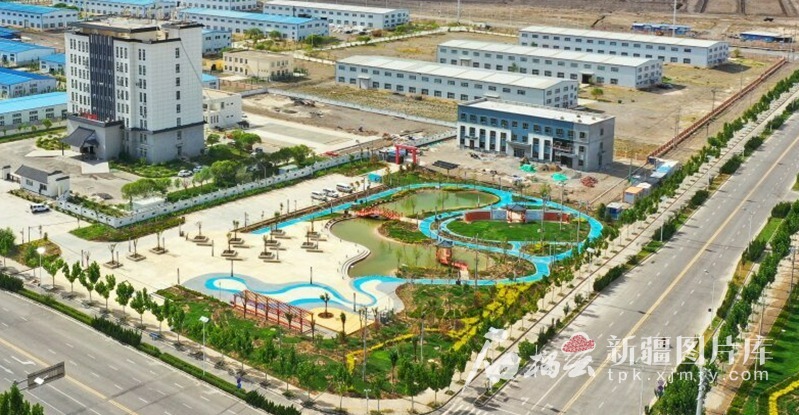 江蘇援建的克孜勒蘇柯?tīng)柨俗巫灾沃萁K產(chǎn)業(yè)園一角(2024年7月9日無(wú)人機(jī)攝)。