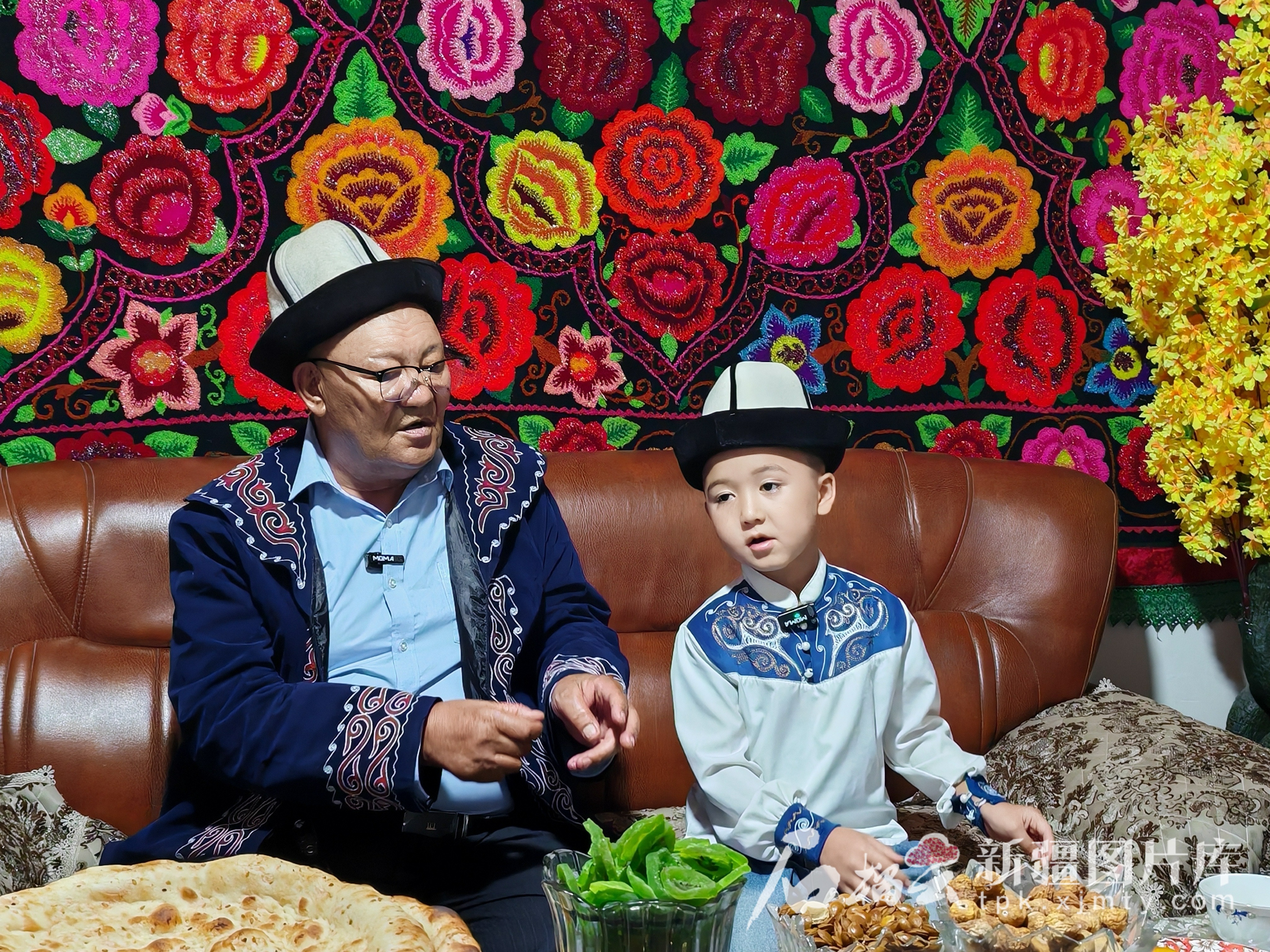 7月7日,76歲的民間藝人圖爾蓀·伊卜拉伊木與6歲半的小文藝愛好者祖力皮卡爾·尤努斯共同演唱英雄史詩《瑪納斯》的片段。天山網(wǎng)-新疆日報記者 張蓓攝