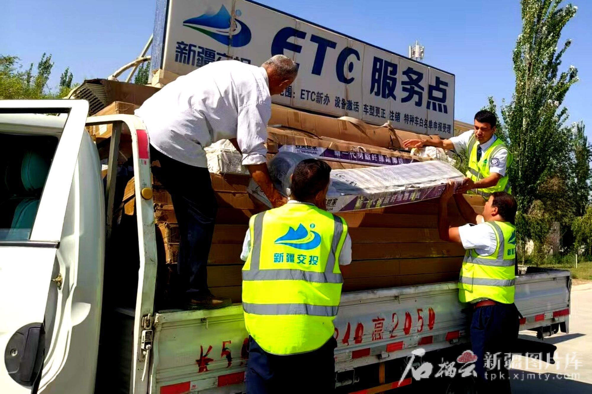 7月7日,S16線麥喀高速牌樓收費站工作人員在烈日下幫助司機(jī)重裝貨物,安全上路。廖婷攝