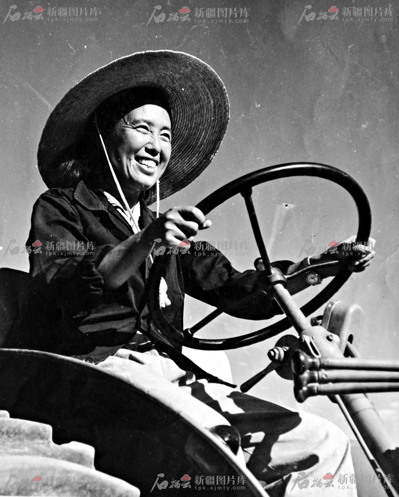 1960年,金茂芳駕駛拖拉機犁地。圖片由新疆圖片庫提供
