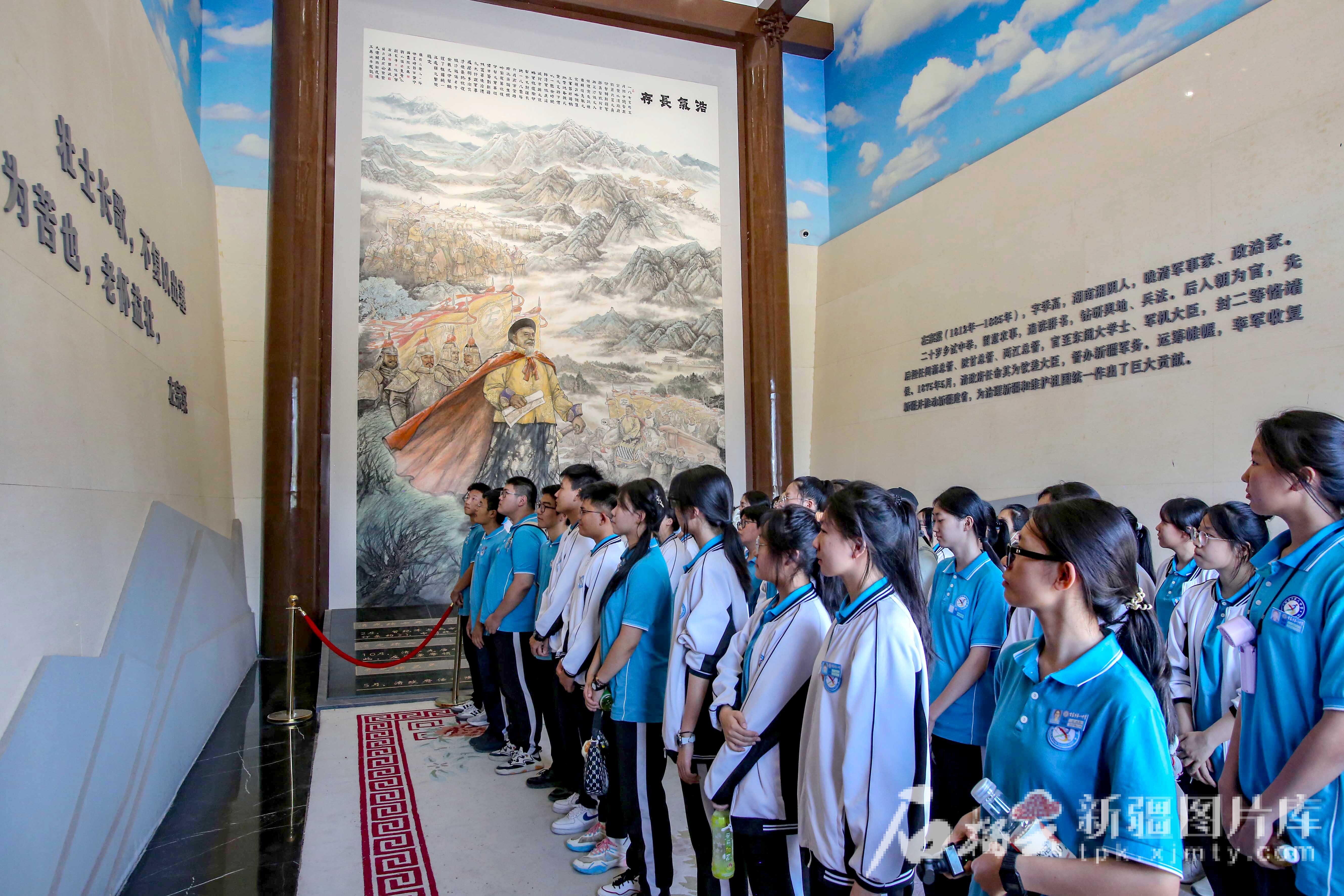 7月9日,哈密市第八中學(xué)的學(xué)生在左公文化苑參觀學(xué)習(xí)。