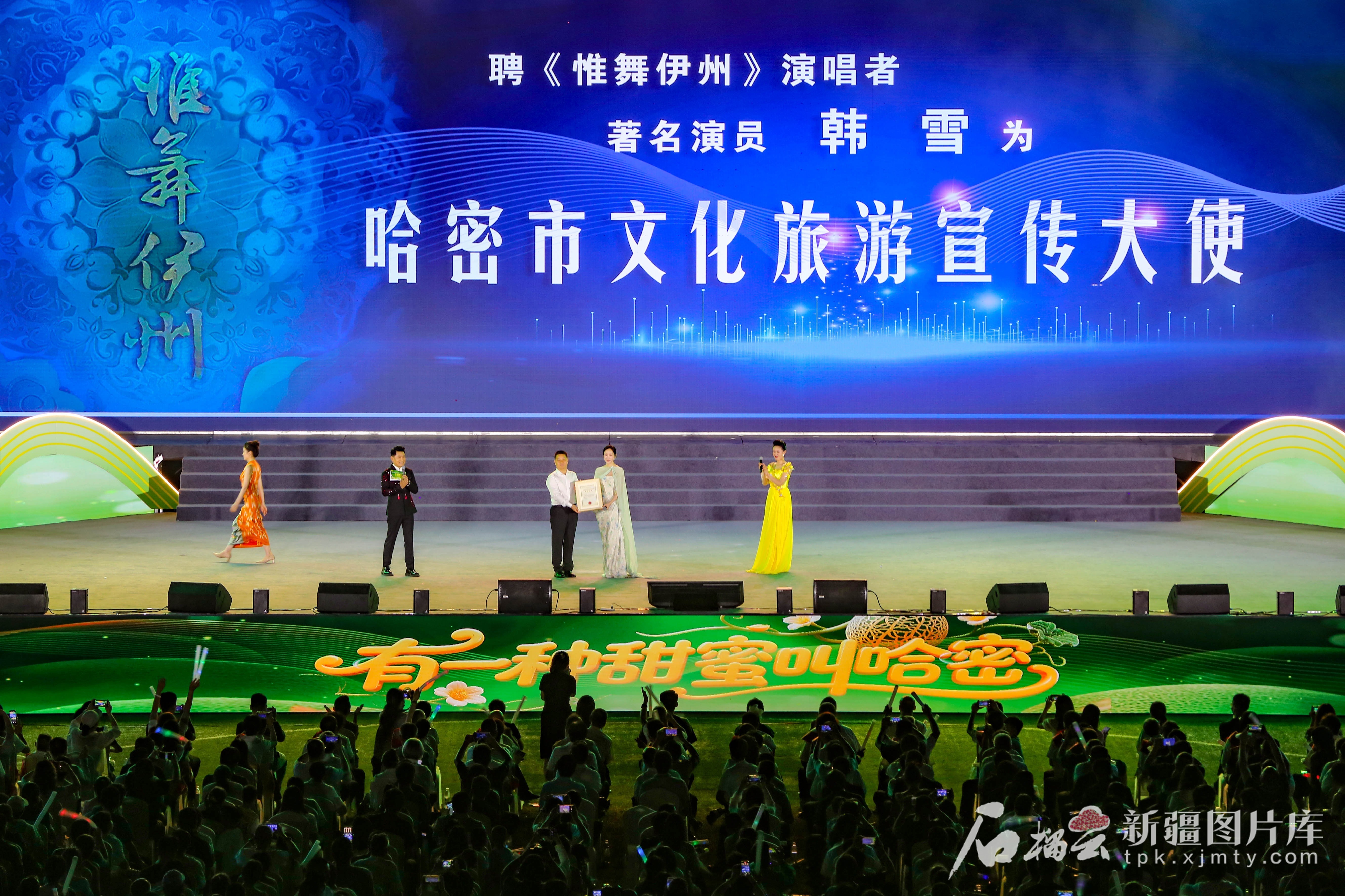 7月11日,新疆·哈密“甜蜜之旅”第十九屆哈密瓜節(jié)開幕式上哈密市聘請(qǐng)演員韓雪為哈密市文化旅游宣傳大使。