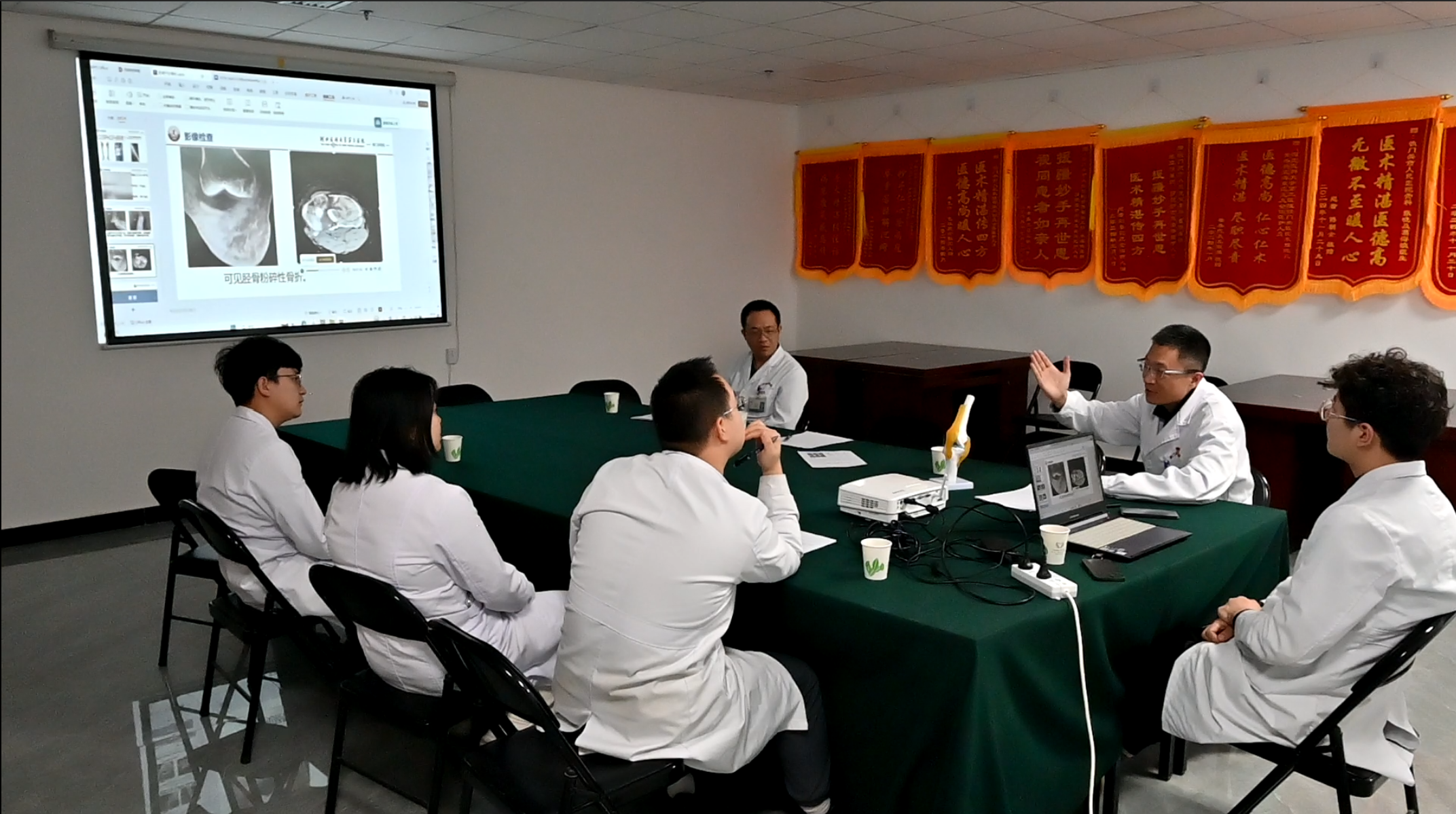 2月16日,在鐵門關(guān)市人民醫(yī)院骨科示教室,該院常務(wù)副院長、援疆醫(yī)生劉建寧(右二)正為當(dāng)?shù)蒯t(yī)生講解骨科病例診療要點(diǎn)。吳光明 攝