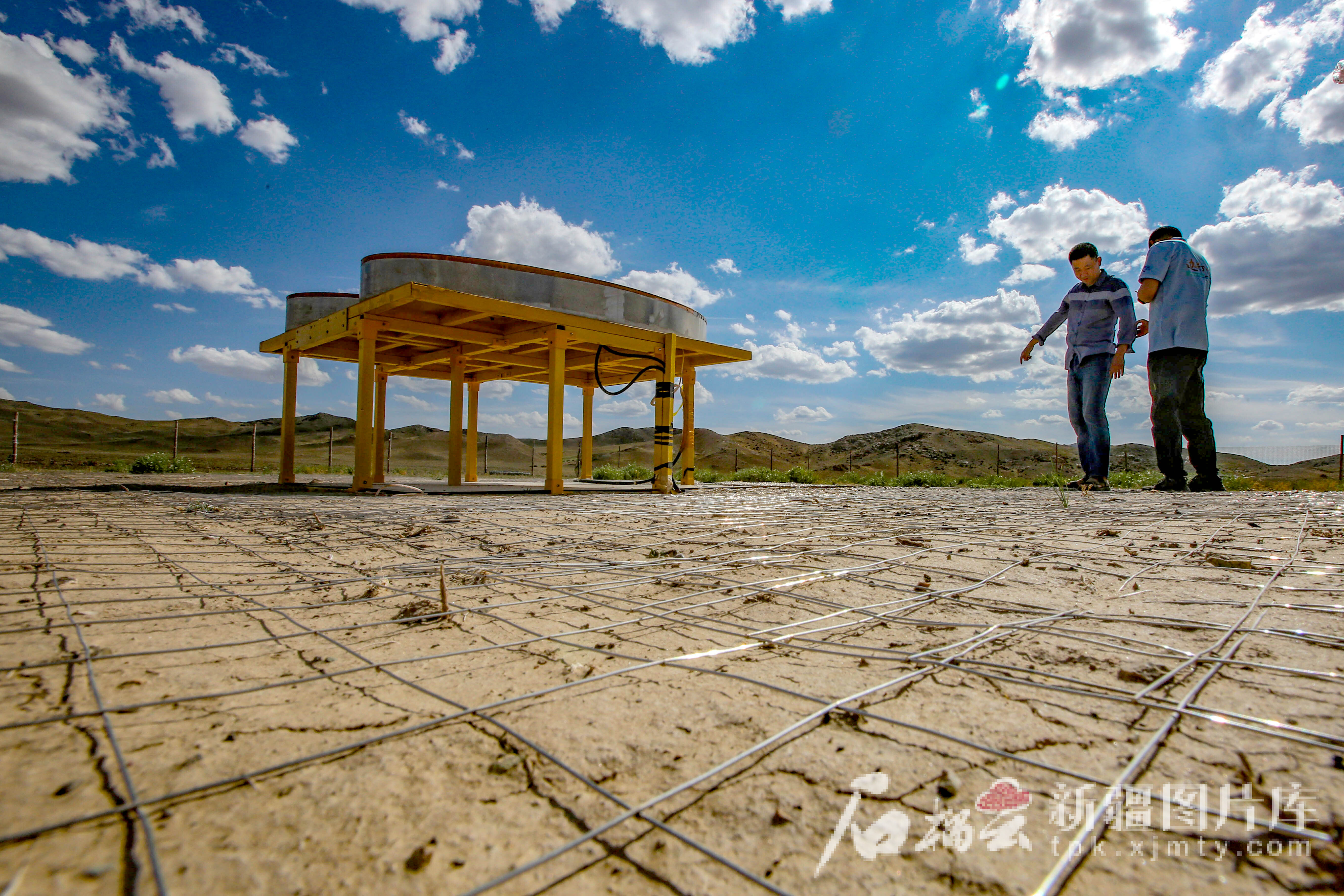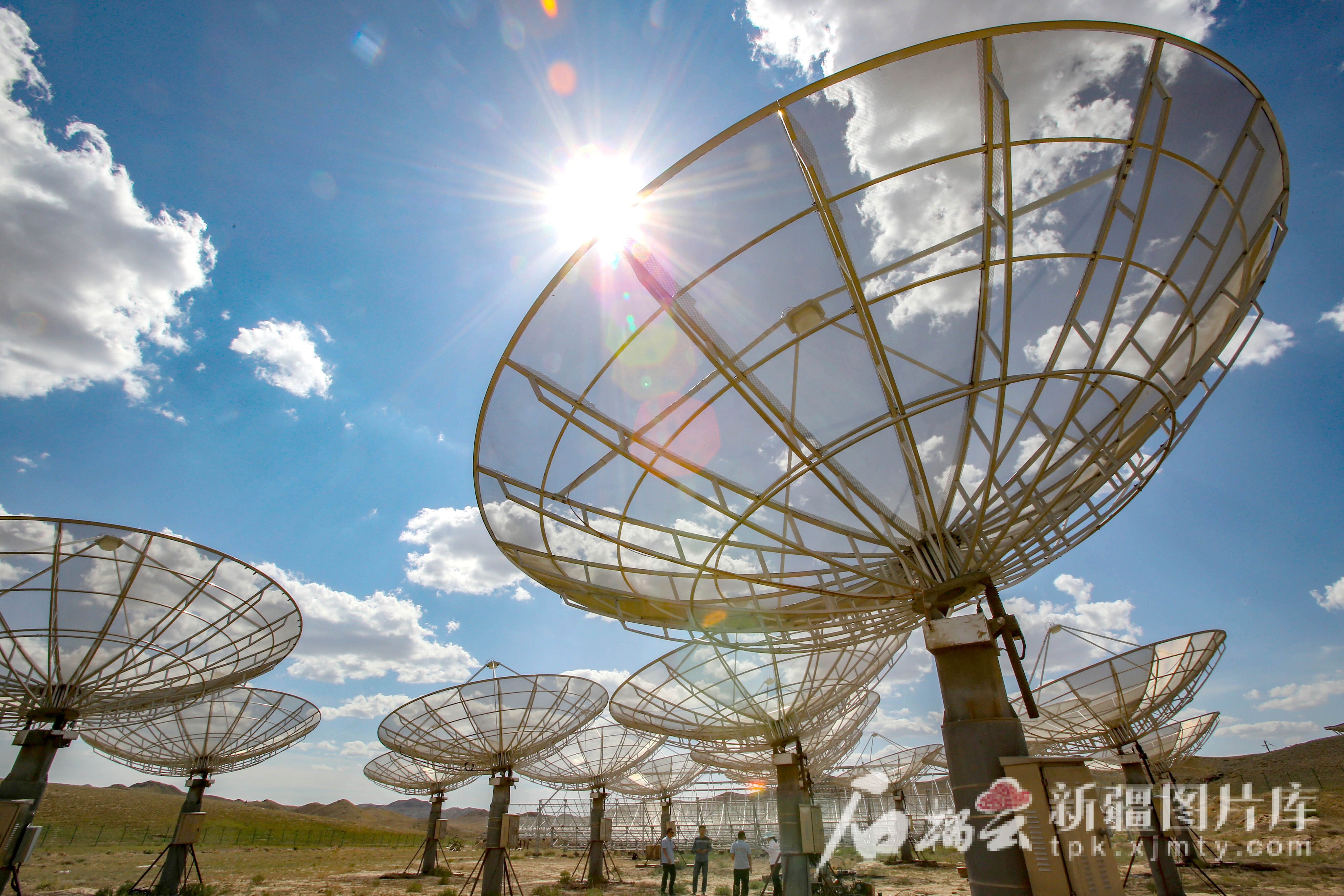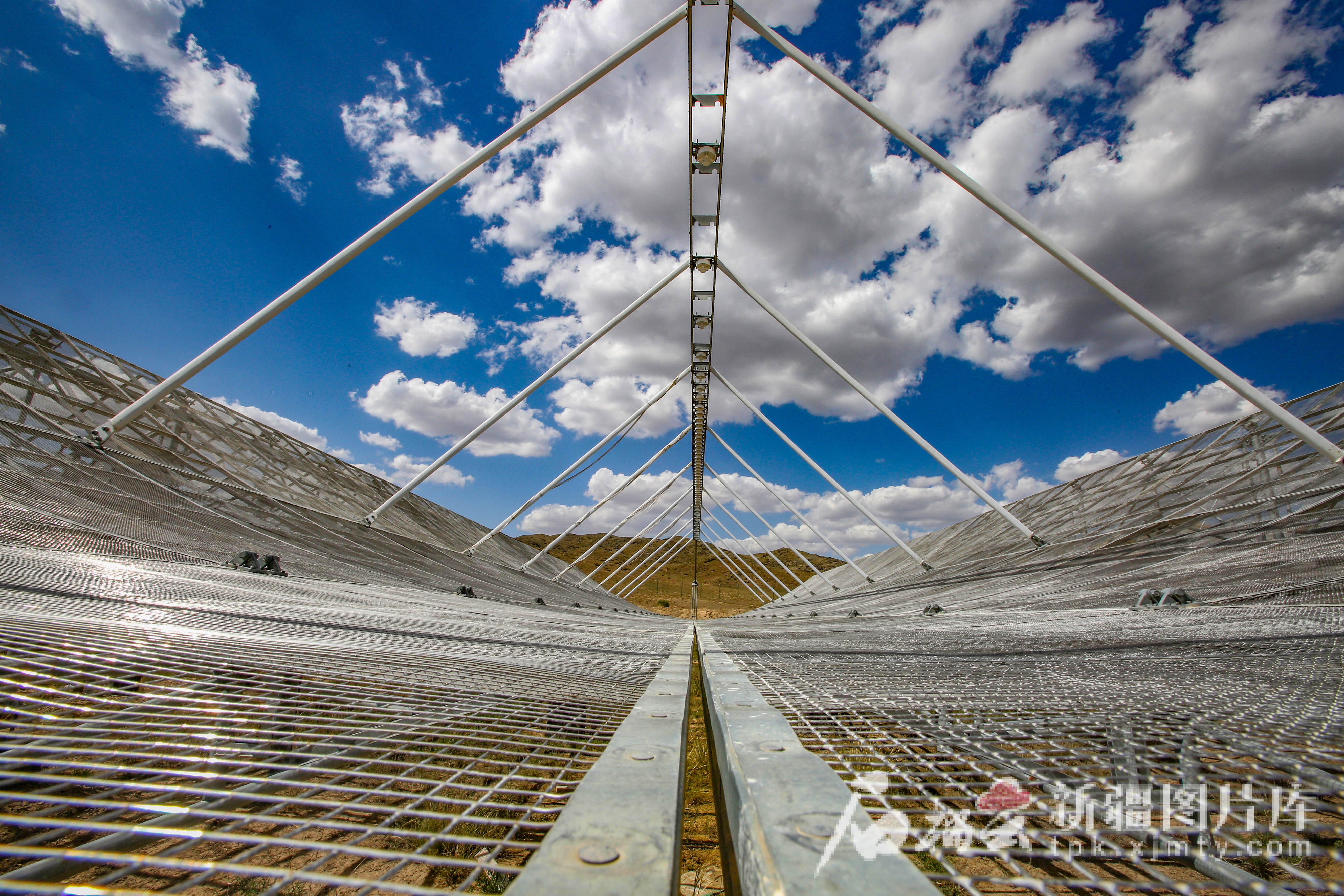 7月7日,在哈密市巴里坤哈薩克自治縣大紅柳峽鄉(xiāng)拍攝的國家天文臺(tái)紅柳峽觀測站天籟射電望遠(yuǎn)鏡柱形天線。