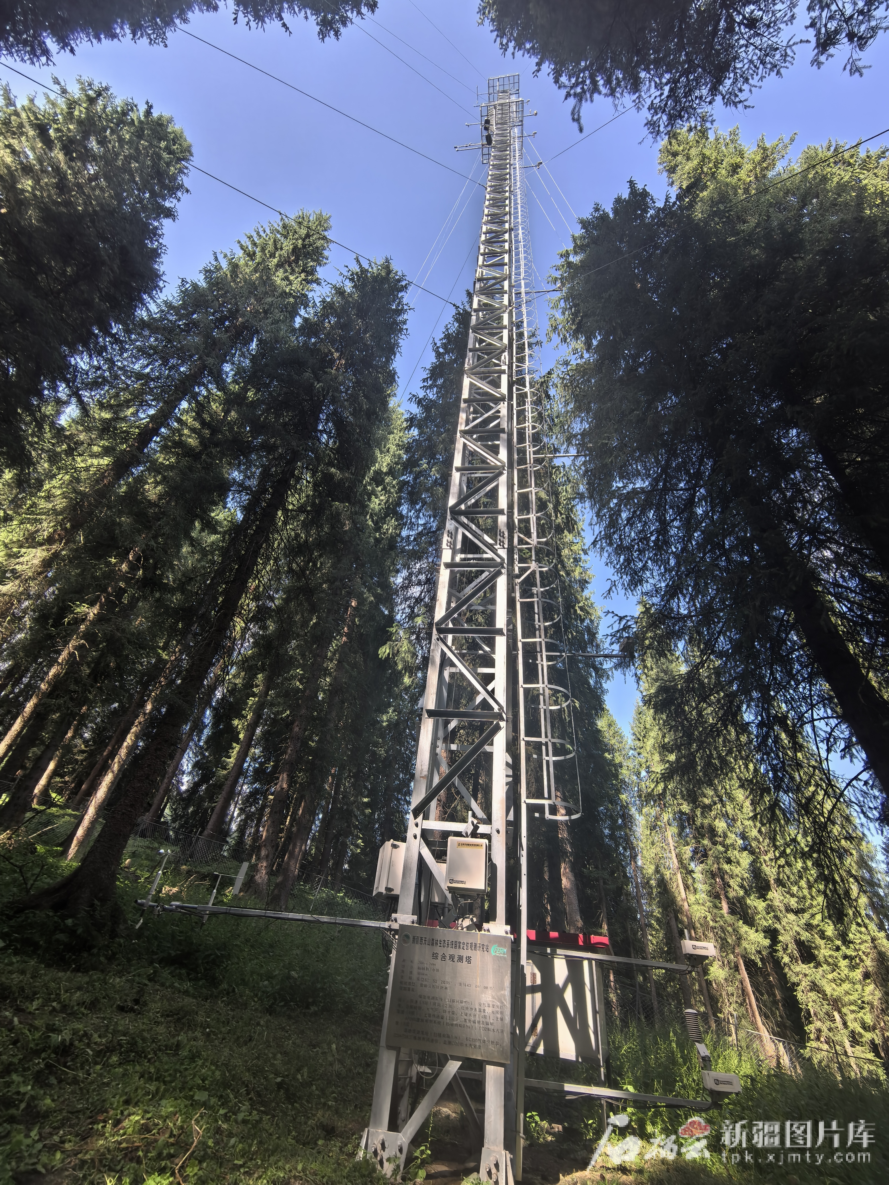 7月13日,新疆西天山森林生態(tài)系統(tǒng)定位觀測研究站通量塔全貌。天山網(wǎng)-新疆日報記者 趙悅攝