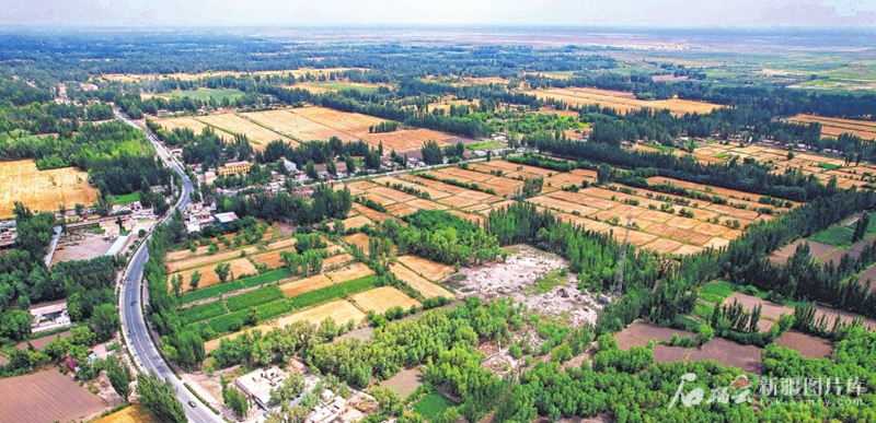 阿克陶縣玉麥鎮(zhèn)玉麥村一角(6月27日無人機(jī)攝)。從空中俯瞰,玉麥村綠樹成蔭,農(nóng)田和民居相映成趣,構(gòu)成一幅美麗的鄉(xiāng)村畫卷。天山網(wǎng)-新疆日報記者 鄒懿攝