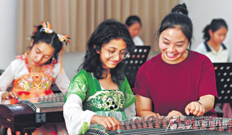 7月5日,各族小朋友在葉城縣昆侖國學(xué)書院學(xué)習(xí)古箏彈奏。該書院設(shè)置國學(xué)經(jīng)典、書法繪畫等課程,常態(tài)化開展文化服務(wù)活動,讓群眾在喜聞樂見的文化活動中獲得精神滋養(yǎng)。 天山網(wǎng)-新疆日報記者 約提克爾·尼加提攝