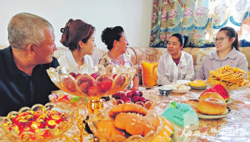 6月23日,烏什縣亞曼蘇柯爾克孜族鄉(xiāng)工作人員在幸福新區(qū)居民家走訪,傾聽群眾心聲。天山網(wǎng)-新疆日報記者 鄒懿攝