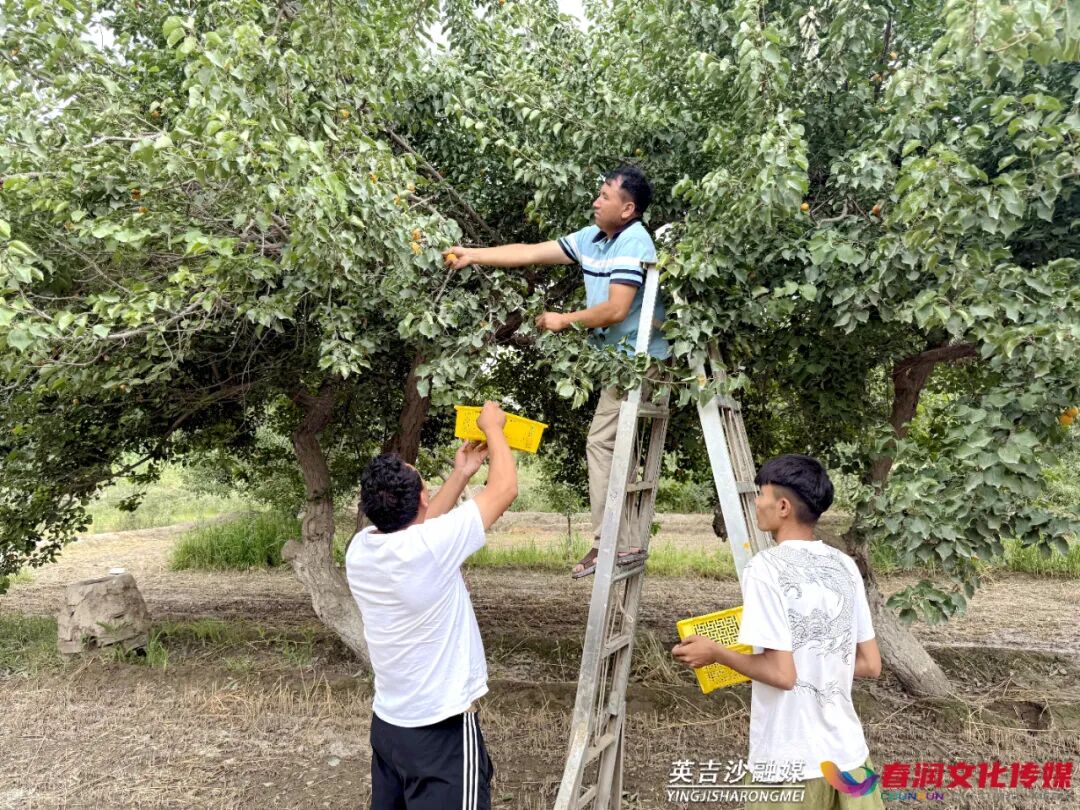 村民正在采摘英吉沙杏。艾孜再姆 攝
