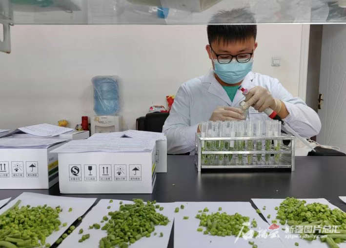 新疆九鼎農(nóng)產(chǎn)品批發(fā)市場的果蔬都要接受農(nóng)殘檢測后才能進(jìn)場交易。 王曉燕 攝