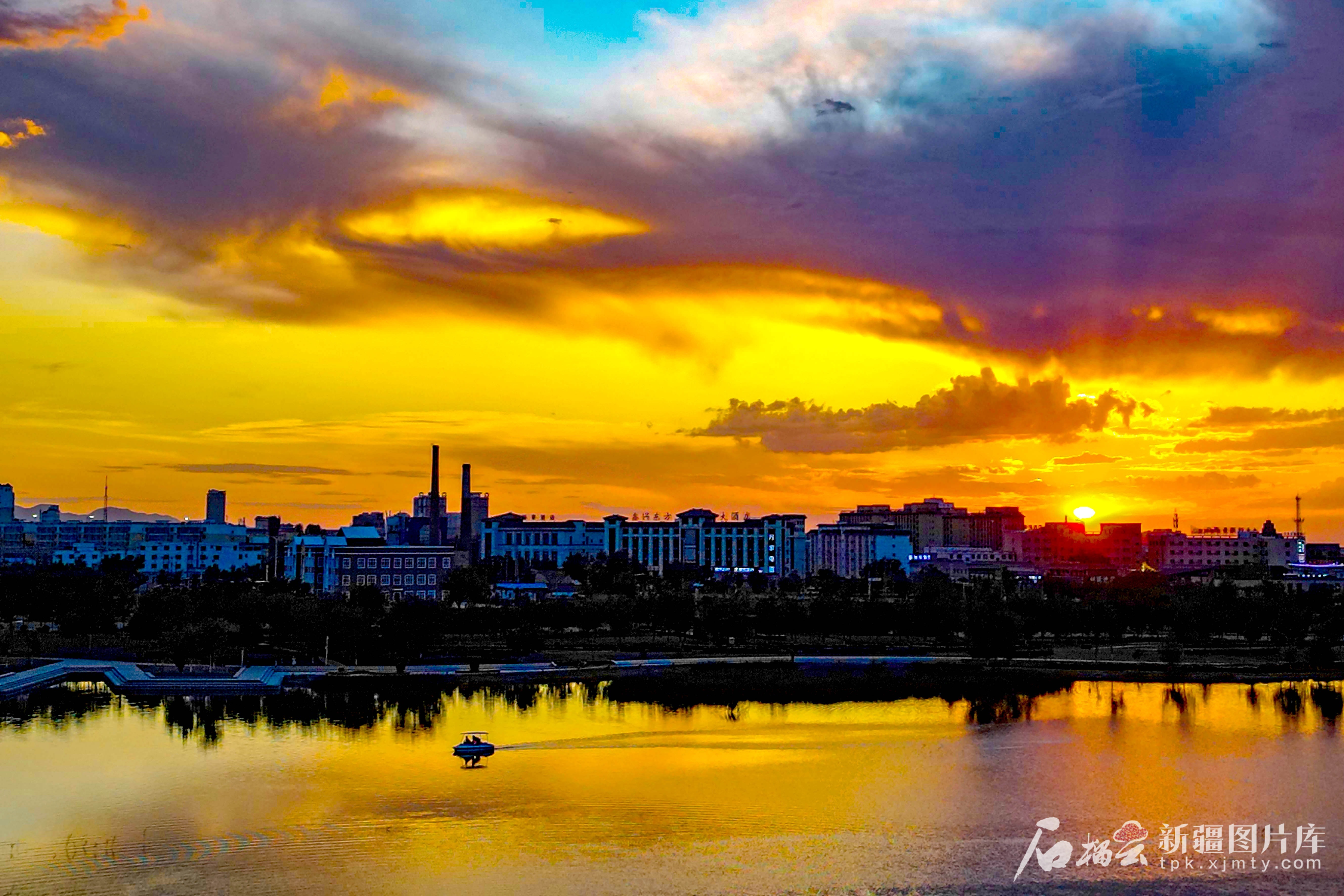 夏夜時(shí)分,在吉木薩爾縣拍攝的庭州灣景觀帶一角。