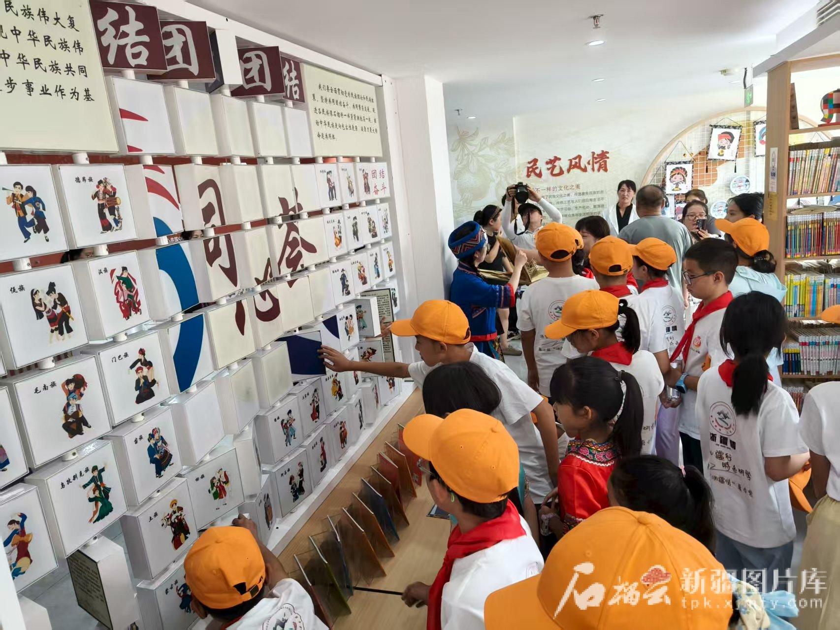 轉(zhuǎn)動(dòng)著“同心薈”墻體上的文圖方塊,56個(gè)民族的簡介一一呈現(xiàn);輕搖著手中的空白書簽,書簽在漆染技藝中變得“漆”妙無窮……7月10日,在浙江省杭州市富陽區(qū)富春街道蔣家橋社區(qū)的“之江同心 富春石榴紅家園”,新疆與浙江的結(jié)對(duì)學(xué)生充分感受到了中華民族大家庭的團(tuán)結(jié)和諧。