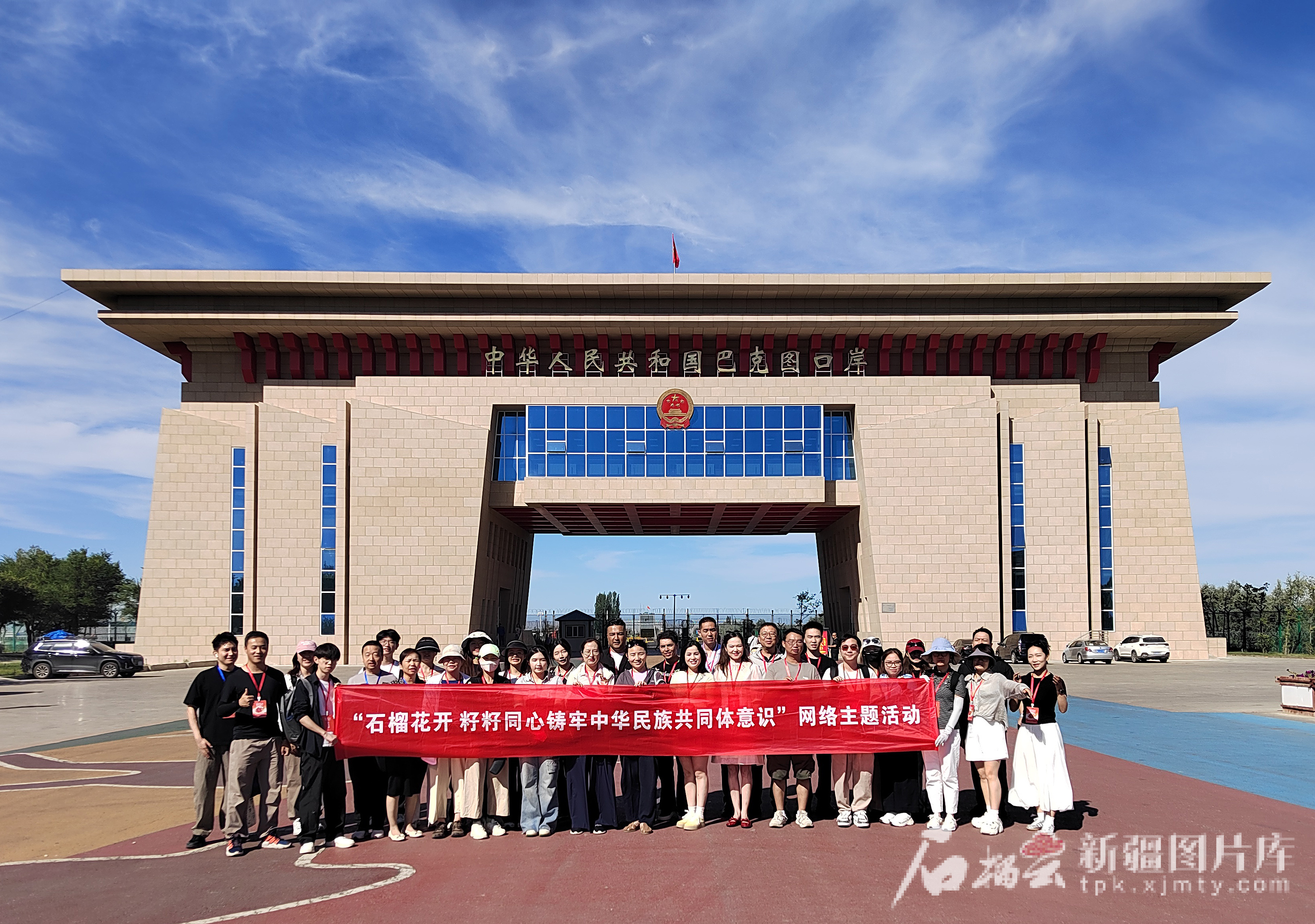 7月23日,“石榴花開 籽籽同心鑄牢中華民族共同體意識”網(wǎng)絡(luò)主題活動采訪團在巴克圖口岸國門前合影。