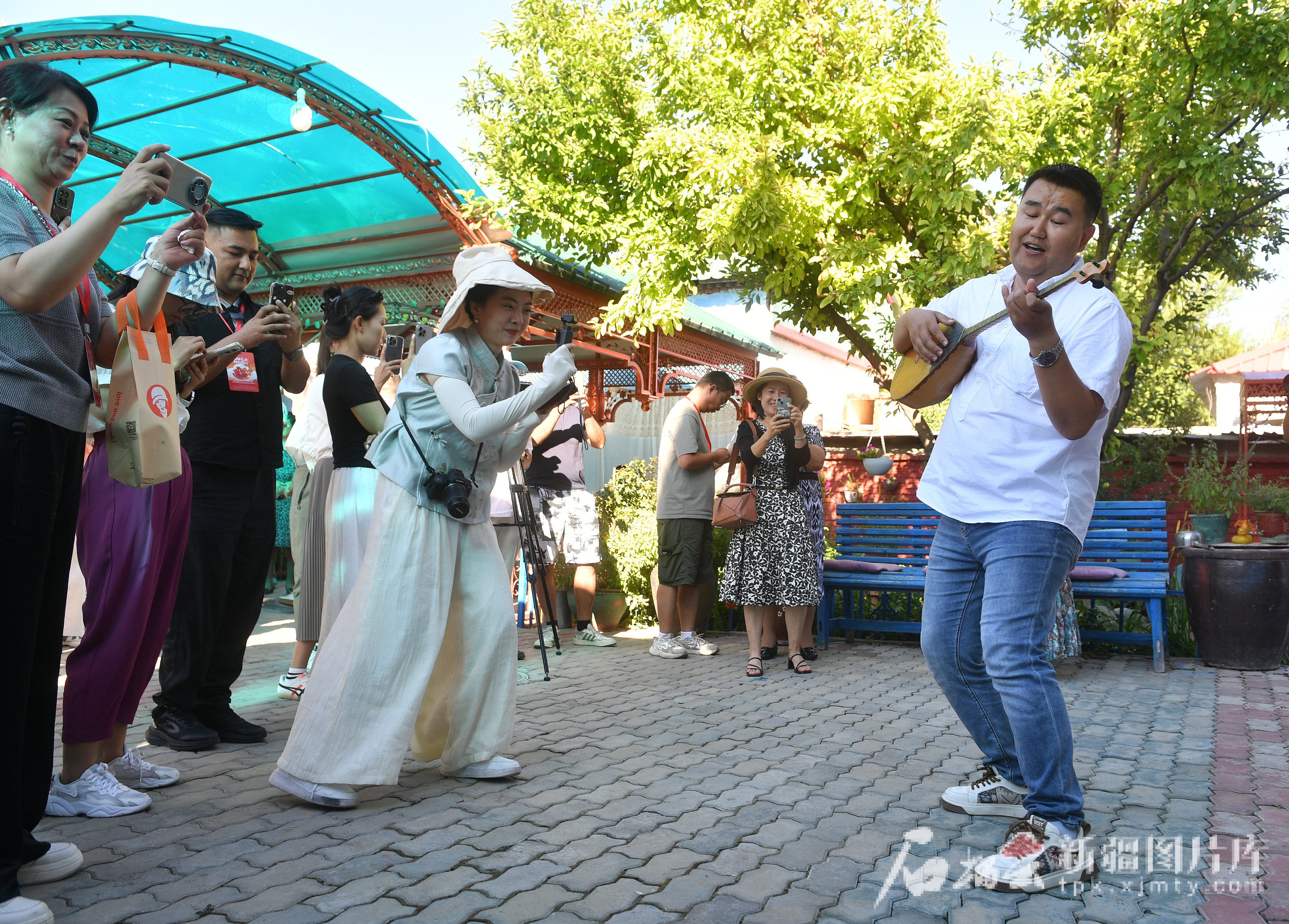 7月23日,采訪團一行在塔城市手風(fēng)琴博物館參觀體驗。
