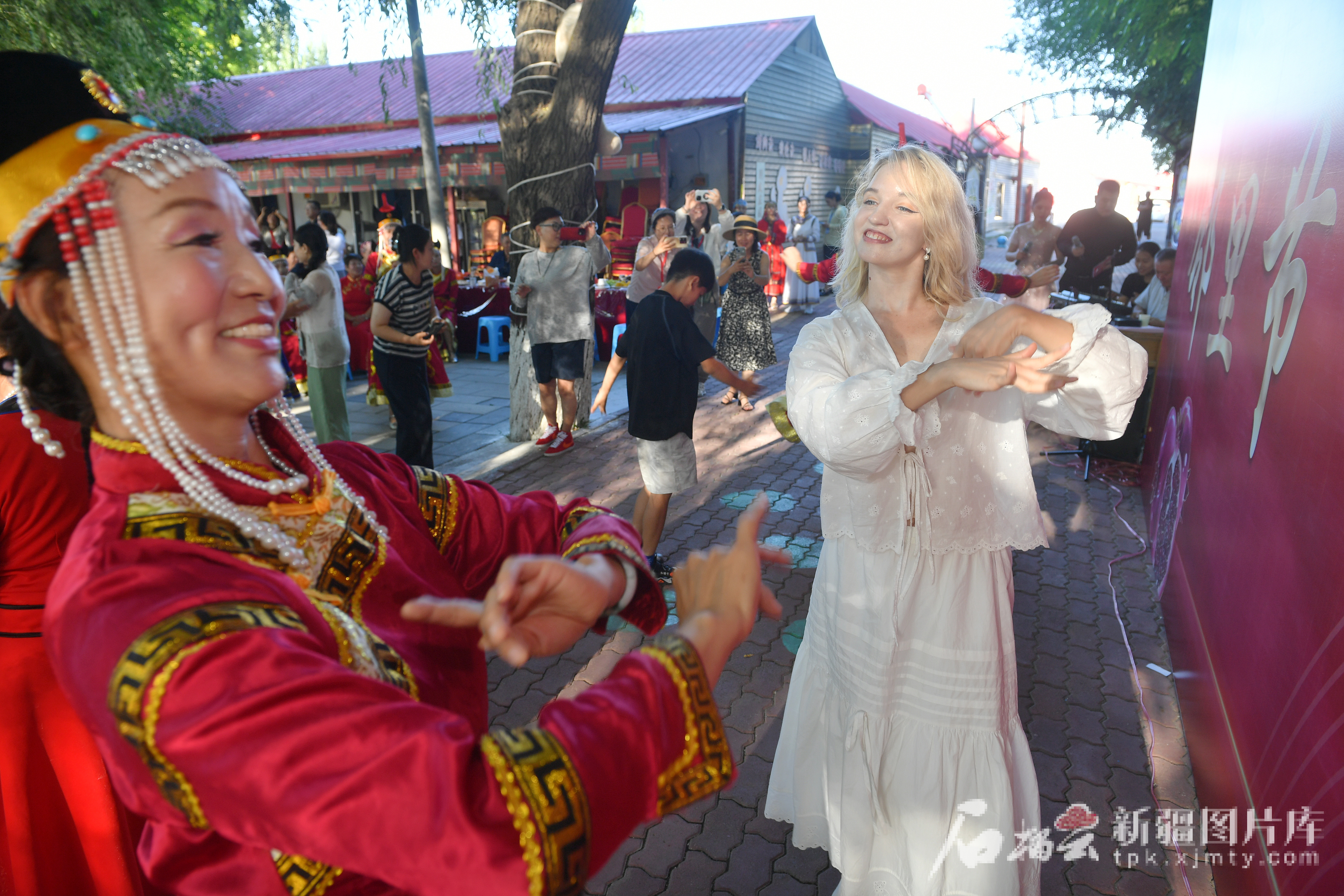 7月23日,俄羅斯籍網(wǎng)絡(luò)達人梅麗莎在塔城市新城街道哈爾墩社區(qū)參加鄰里節(jié)百家宴活動。