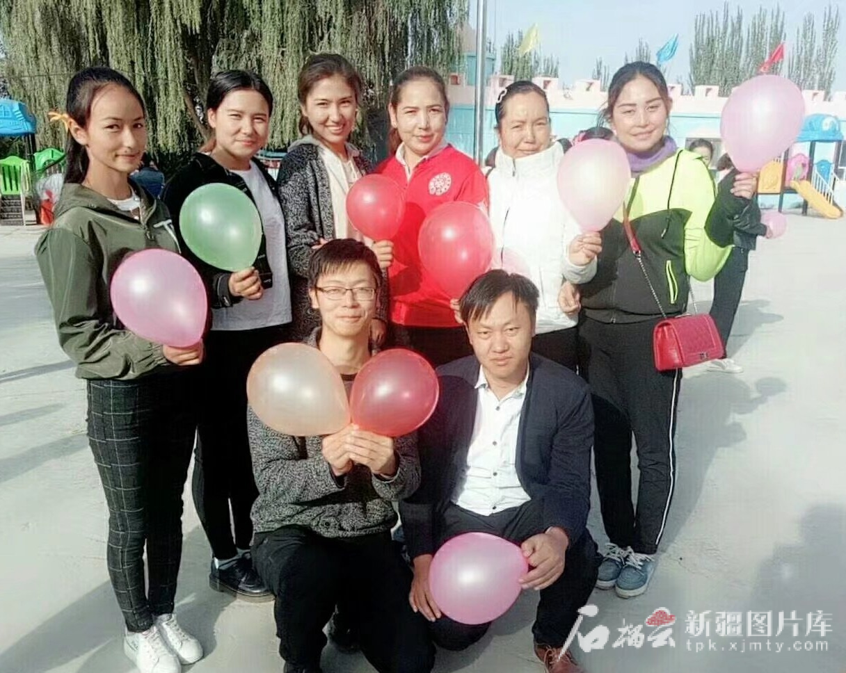 阿迪來·吐爾洪(左二)和幼兒園的同事們。 阿迪來·吐爾洪提供