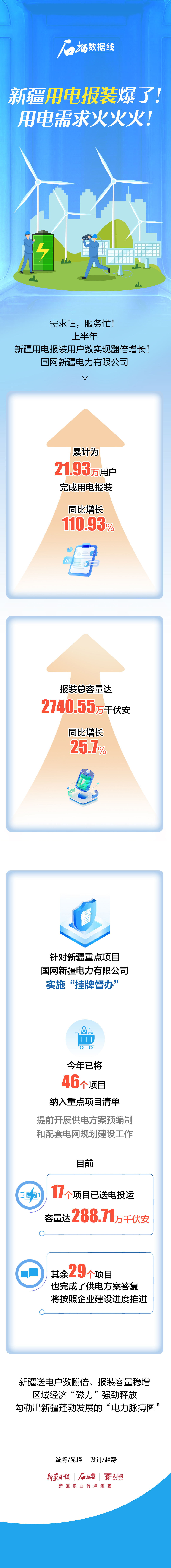 需求旺,服務(wù)忙!上半年,新疆用電報(bào)裝用戶數(shù)實(shí)現(xiàn)翻倍增長。