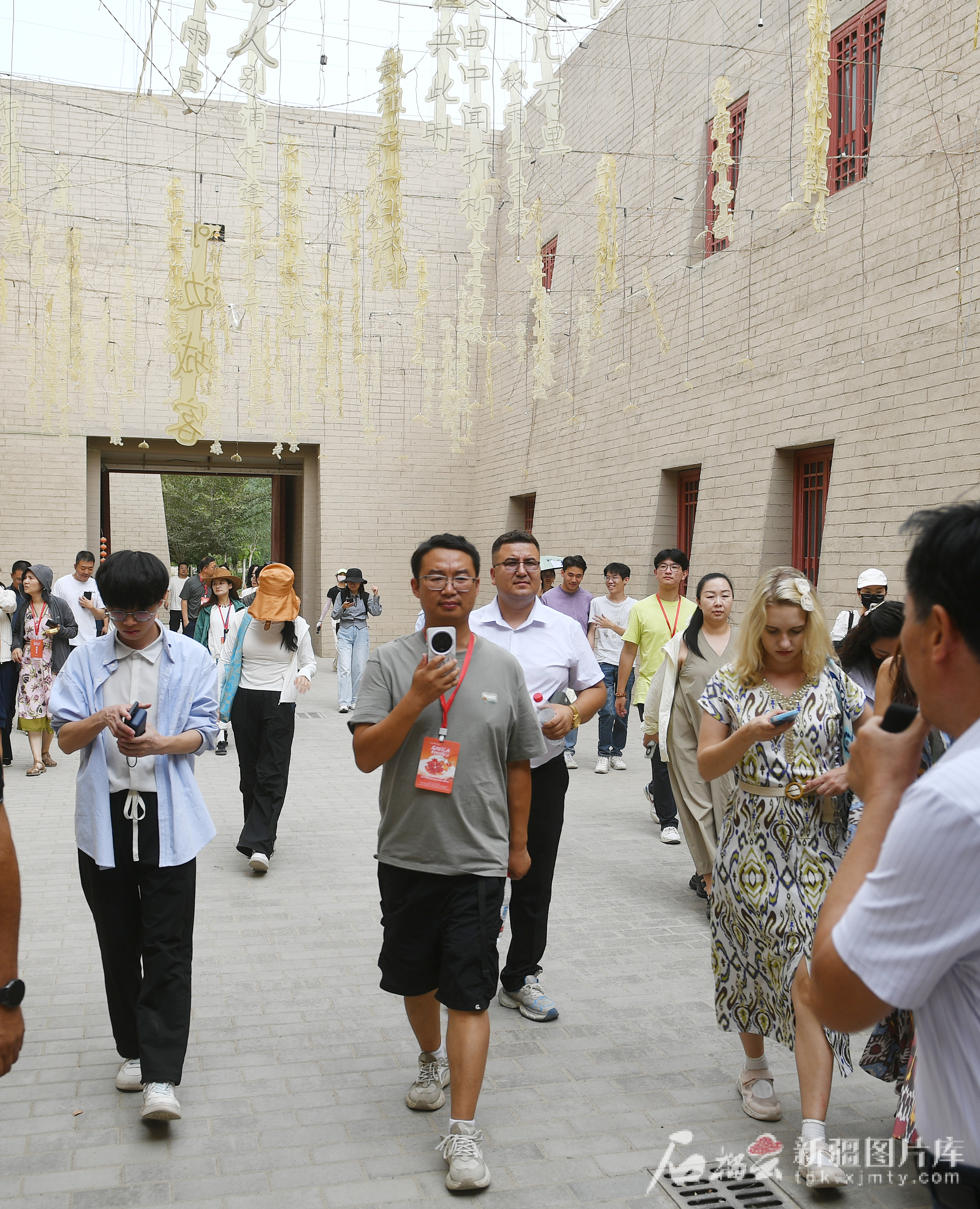 7月27日,采訪團(tuán)一行在新和縣的唐安西都護(hù)府文化園參觀。
