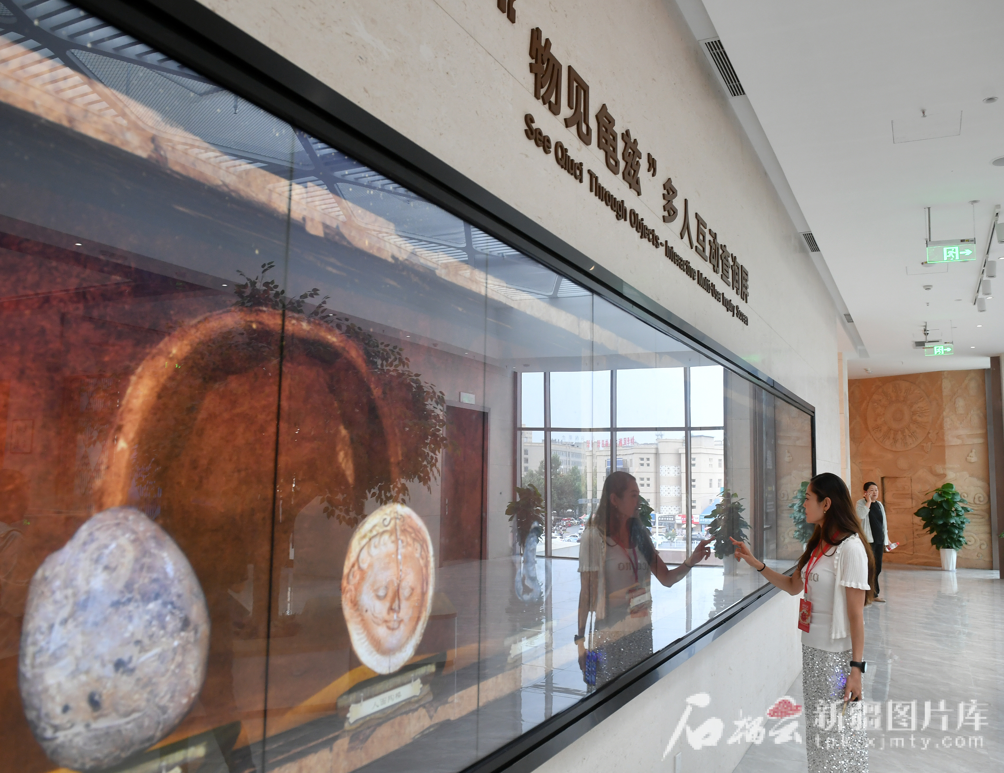 7月26日,采訪團(tuán)成員在龜茲博物館體驗(yàn)互動(dòng)項(xiàng)目。