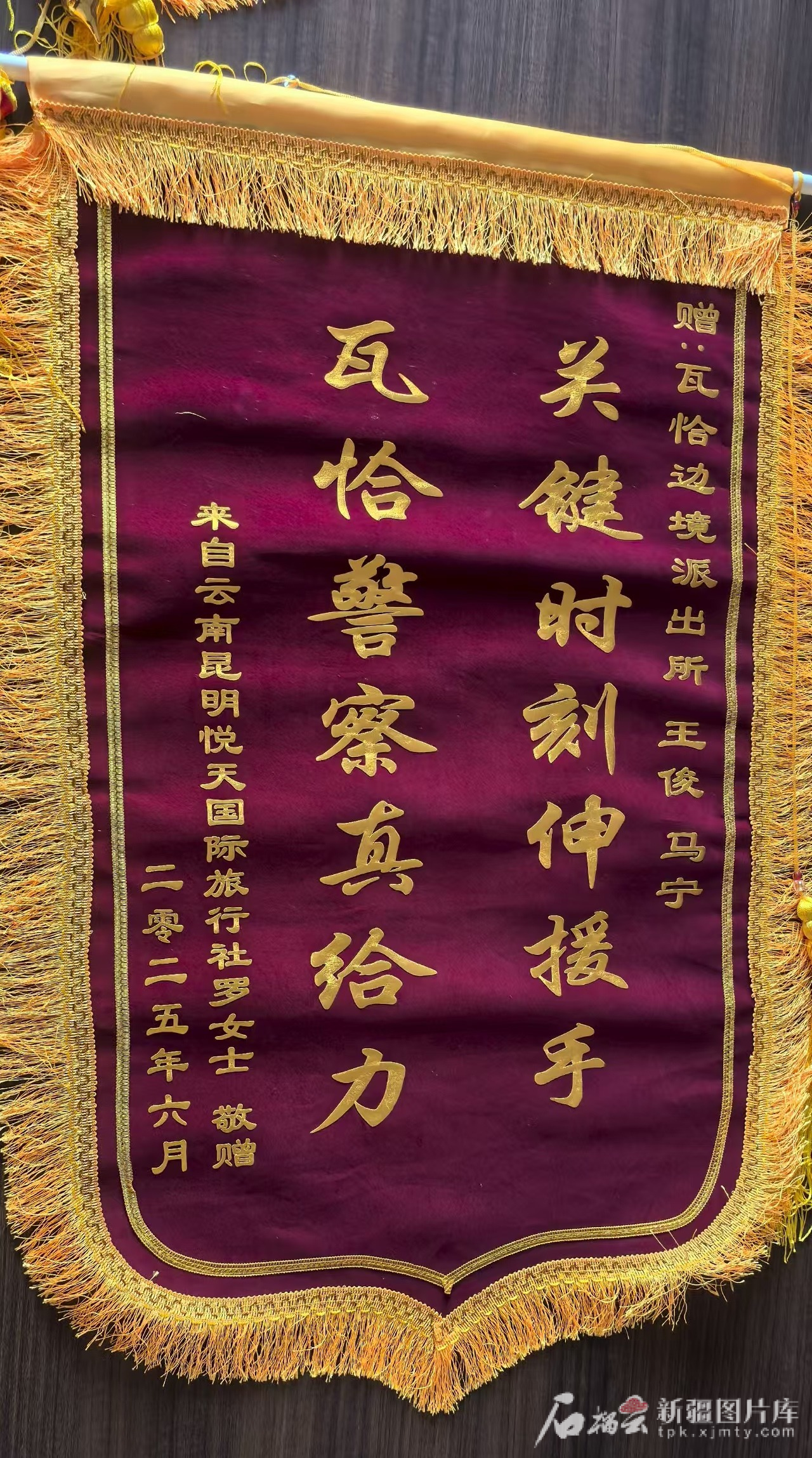 瓦恰邊境派出所民警收到游客贈(zèng)送的感謝錦旗。天山網(wǎng)-新疆日報(bào)記者王娜攝