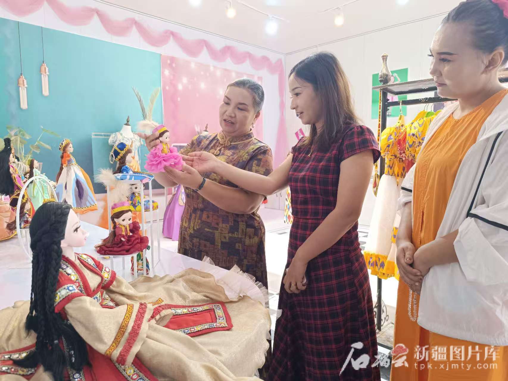 排麗旦·吐地向參觀者展示公司的特色玩具娃娃。天山網(wǎng)-新疆日報記者任江攝