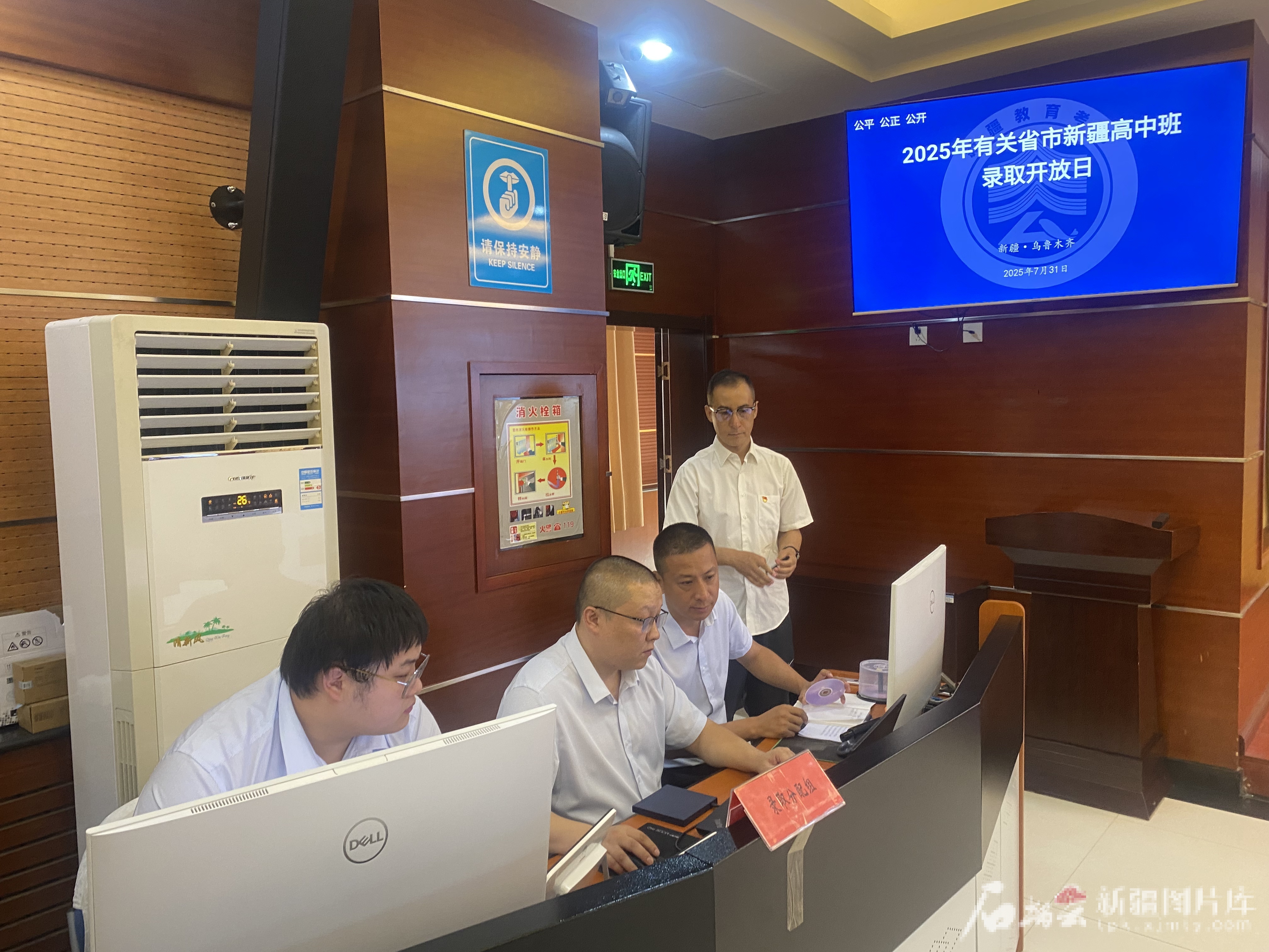 7月31日,新疆教育考試院舉辦2025年有關(guān)省市新疆高中班錄取工作開放日活動,現(xiàn)場進行了錄取考生就讀學(xué)校隨機分配工作。