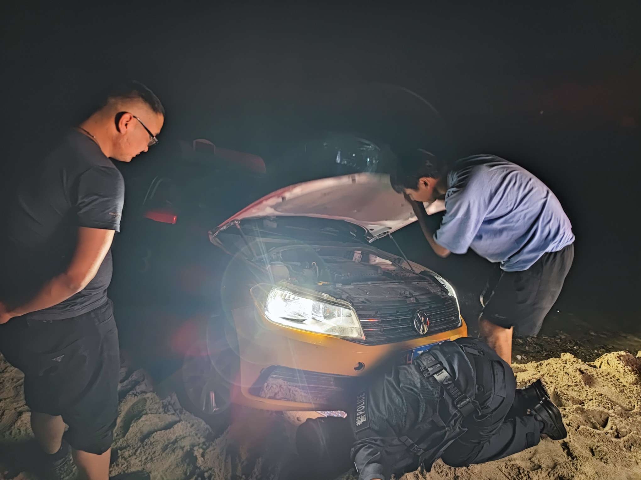 暖新聞|車(chē)陷沙窩 警燈照歸途