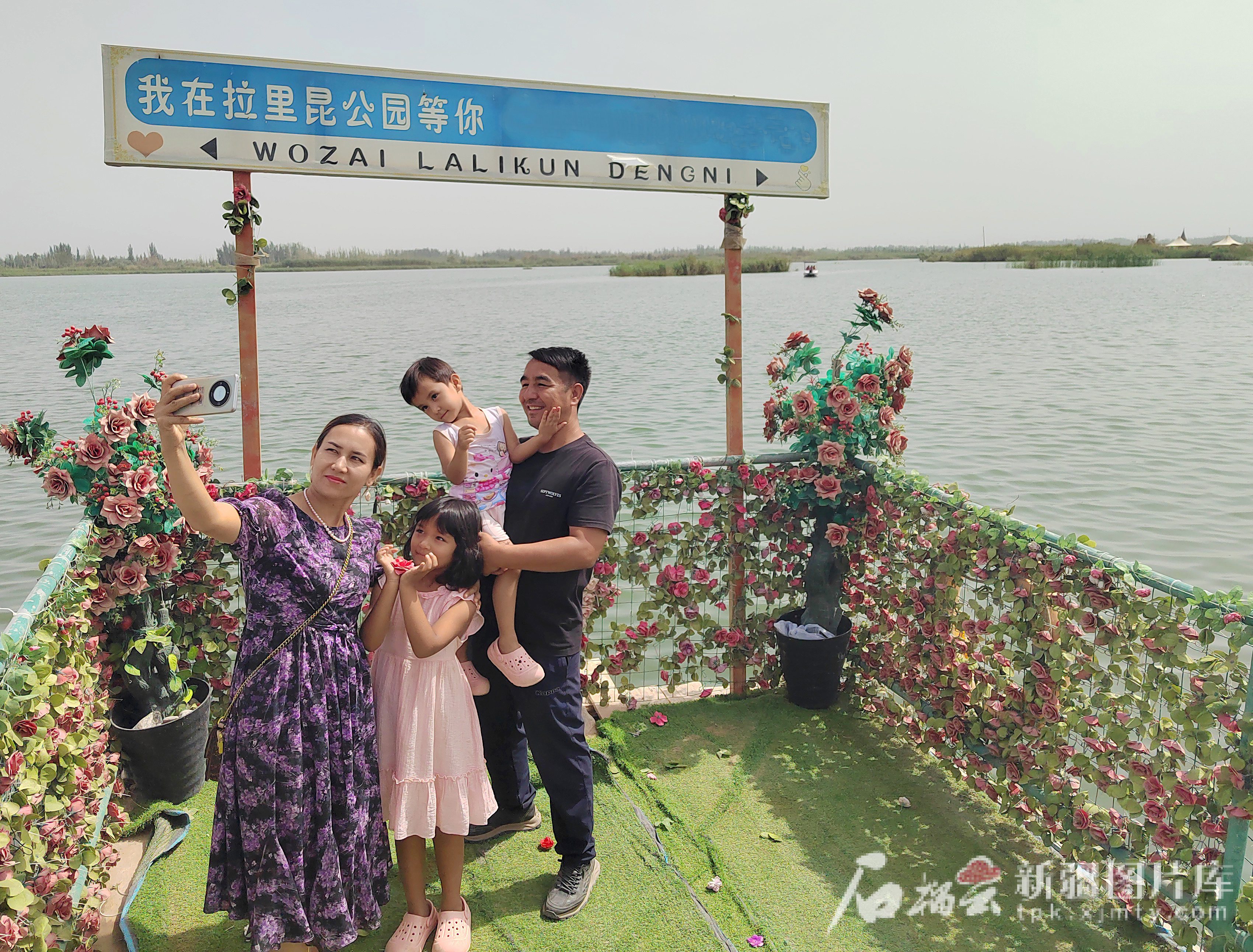 8月6日,游客在拉里昆國(guó)家濕地公園自拍。