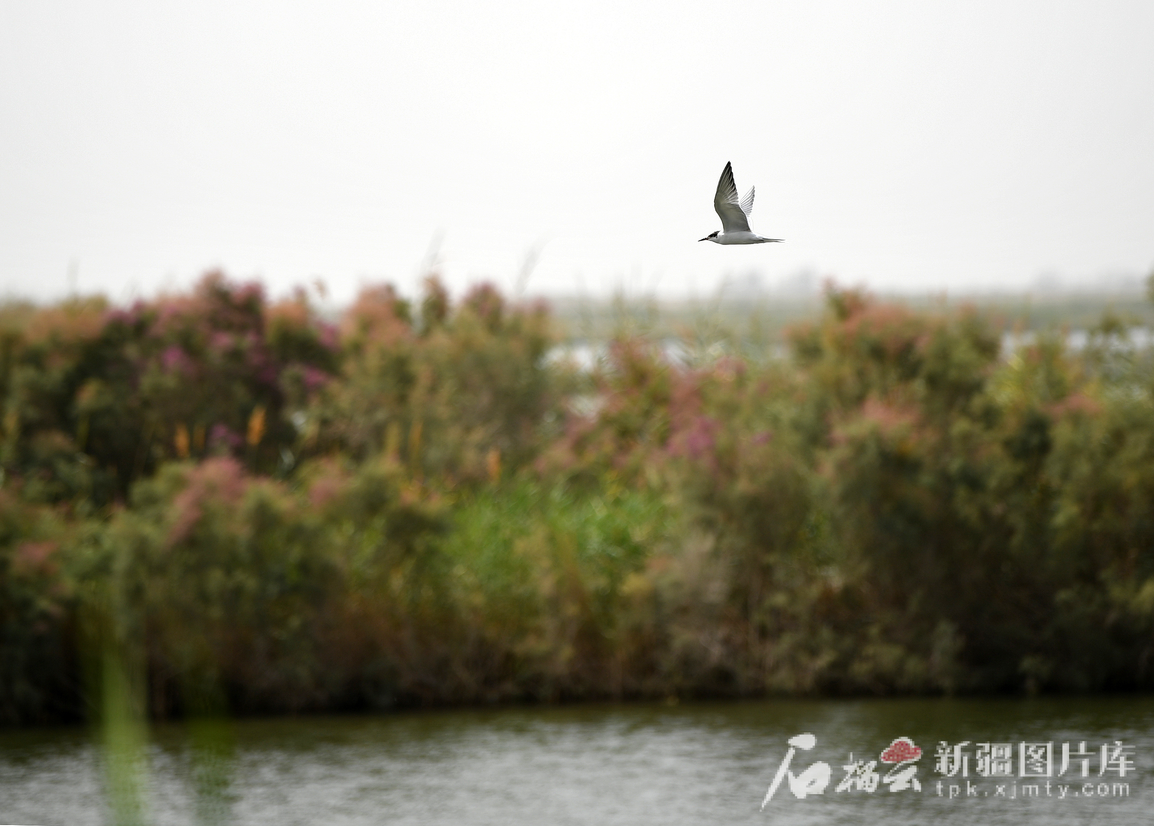 8月6日,拉里昆國(guó)家濕地公園,一只海鷗在飛翔。