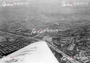 1959年從飛機(jī)上拍攝的烏魯木齊市北門片區(qū)。宋士敬攝