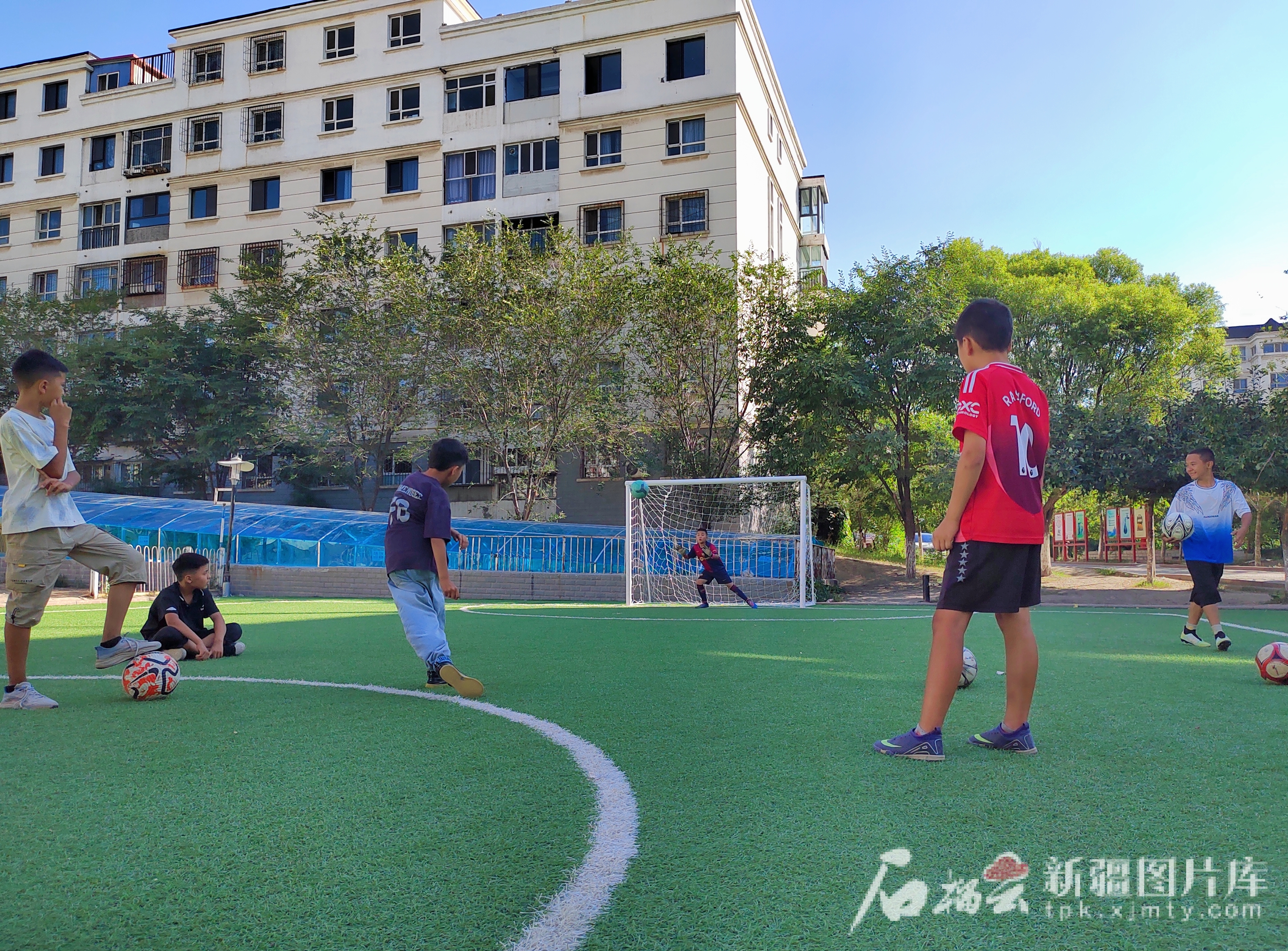 烏魯木齊市天山區(qū)延安路街道吉順路北社區(qū)的孩子們在小區(qū)足球場踢球。天山網(wǎng)-新疆日報記者 董亮攝