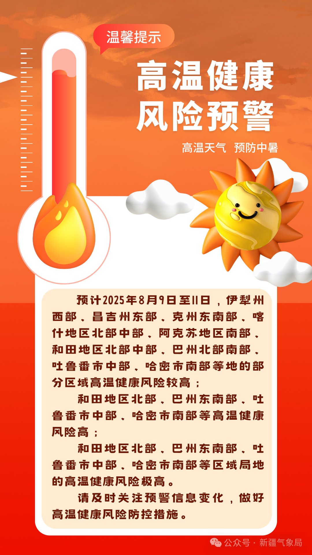 天山網(wǎng)-新疆日報訊(記者謝慧變報道)為科學(xué)應(yīng)對持續(xù)高溫天氣對公眾健康的威脅,8月9日,自治區(qū)疾病預(yù)防控制局與自治區(qū)氣象局首次聯(lián)合發(fā)布高溫健康風(fēng)險提示,這是新疆衛(wèi)生健康與氣象部門協(xié)同應(yīng)對高溫健康風(fēng)險方面邁出的重要一步,也是全疆首次推出此類聚焦健康影響的專項風(fēng)險提示。