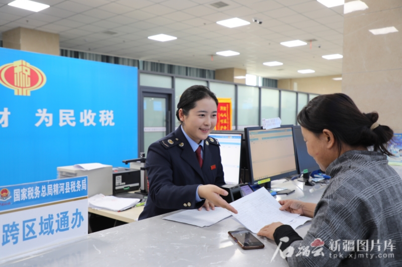 國(guó)家稅務(wù)總局精河縣稅務(wù)局聚焦“高效辦成一件事”,設(shè)立“跨區(qū)域通辦”專窗解決納稅人跨區(qū)域業(yè)務(wù)辦理難題。圖為稅務(wù)干部為納稅人辦理異地涉稅業(yè)務(wù)(資料圖片)。展子涵攝