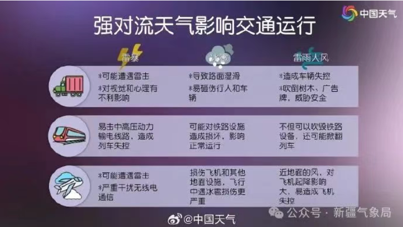 據(jù)新疆氣象局微信公眾號消息,未來三天,北疆西部山區(qū)、天山山區(qū)、南疆西部山區(qū),阿克蘇地區(qū)山區(qū)等地的局地發(fā)生短時強(qiáng)降水、冰雹、雷暴大風(fēng)等強(qiáng)對流天氣的可能性較大,上述區(qū)域局地累計(jì)降水量大,易發(fā)生局地山洪和泥石流、滑坡等地質(zhì)災(zāi)害, 注意防范。