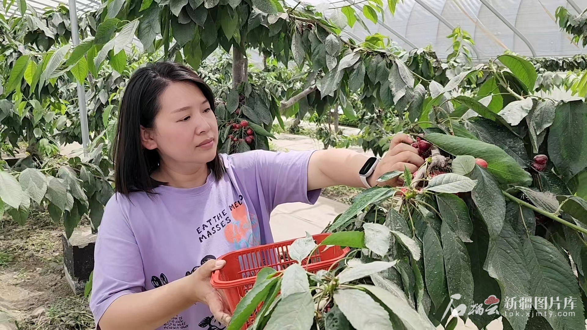 今年櫻桃上市時(shí),庫(kù)爾勒市種植戶(hù)田杜娟在櫻桃園體驗(yàn)采摘的快樂(lè)。圖片由田杜娟提供