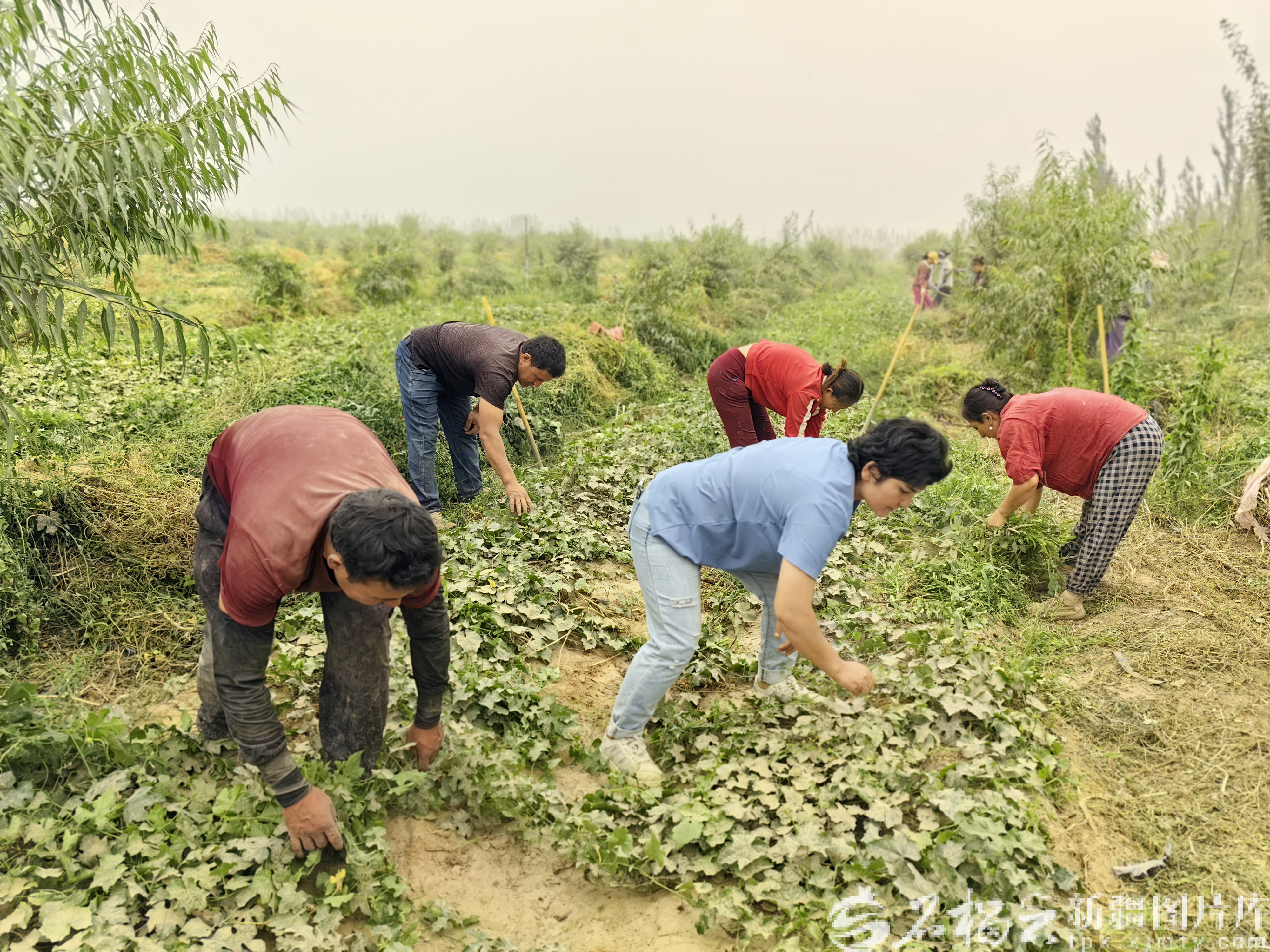 8月16日, 工人們在皮山縣徽岳記瓜蔞種植基地清除地瓜蔞雜草。