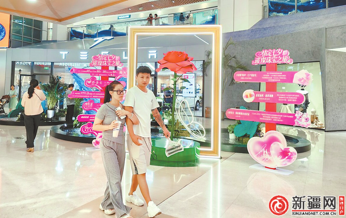 新疆網(wǎng)訊(記者郭玲)8月29日(農(nóng)歷七月初七)是我國的傳統(tǒng)節(jié)日七夕節(jié)。以“愛”為出發(fā)點,烏魯木齊“浪漫經(jīng)濟”日趨升溫。鮮切花卉、黃金珠寶、化妝品、生活家電成為消費者心頭好,疊加電商促銷、即時零售、新品上市等利好因素,共同推動消費市場繁榮活躍。