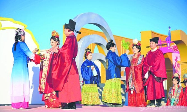 8月28日,昌吉市新疆大劇院,新婚夫婦身著中式喜服舉行集體婚禮。何龍 攝