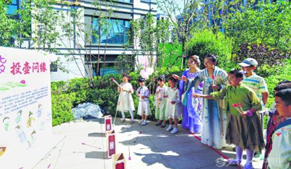 七夕前夕,烏魯木齊經(jīng)濟(jì)技術(shù)開發(fā)區(qū)(頭屯河區(qū))嵩山街街道西湖社區(qū)居民體驗(yàn)投壺游戲。孫振嵩 攝