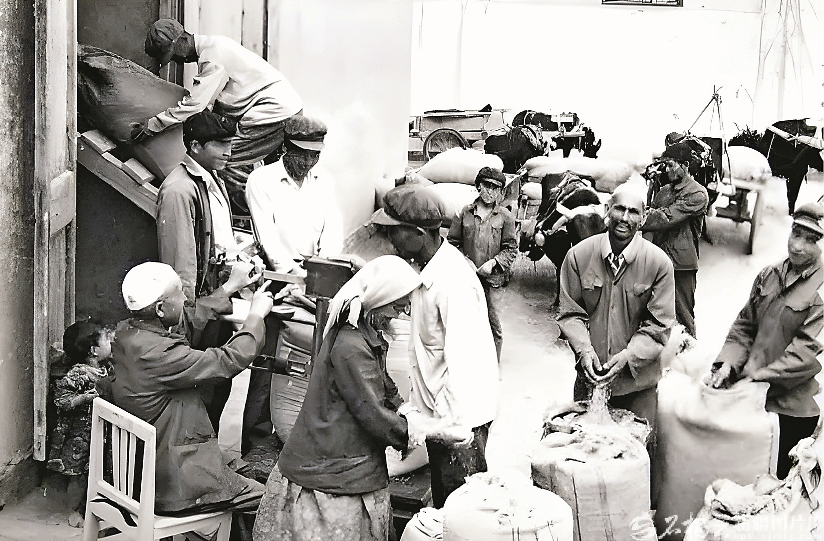 畫面上,維吾爾族社員們聚在糧站門前,踴躍交售新糧。驗糧、過磅、入庫,每個人臉上都洋溢著燦爛笑容。這“踴躍交售公糧”的瞬間,正是新疆農村改革元年的珍貴見證。